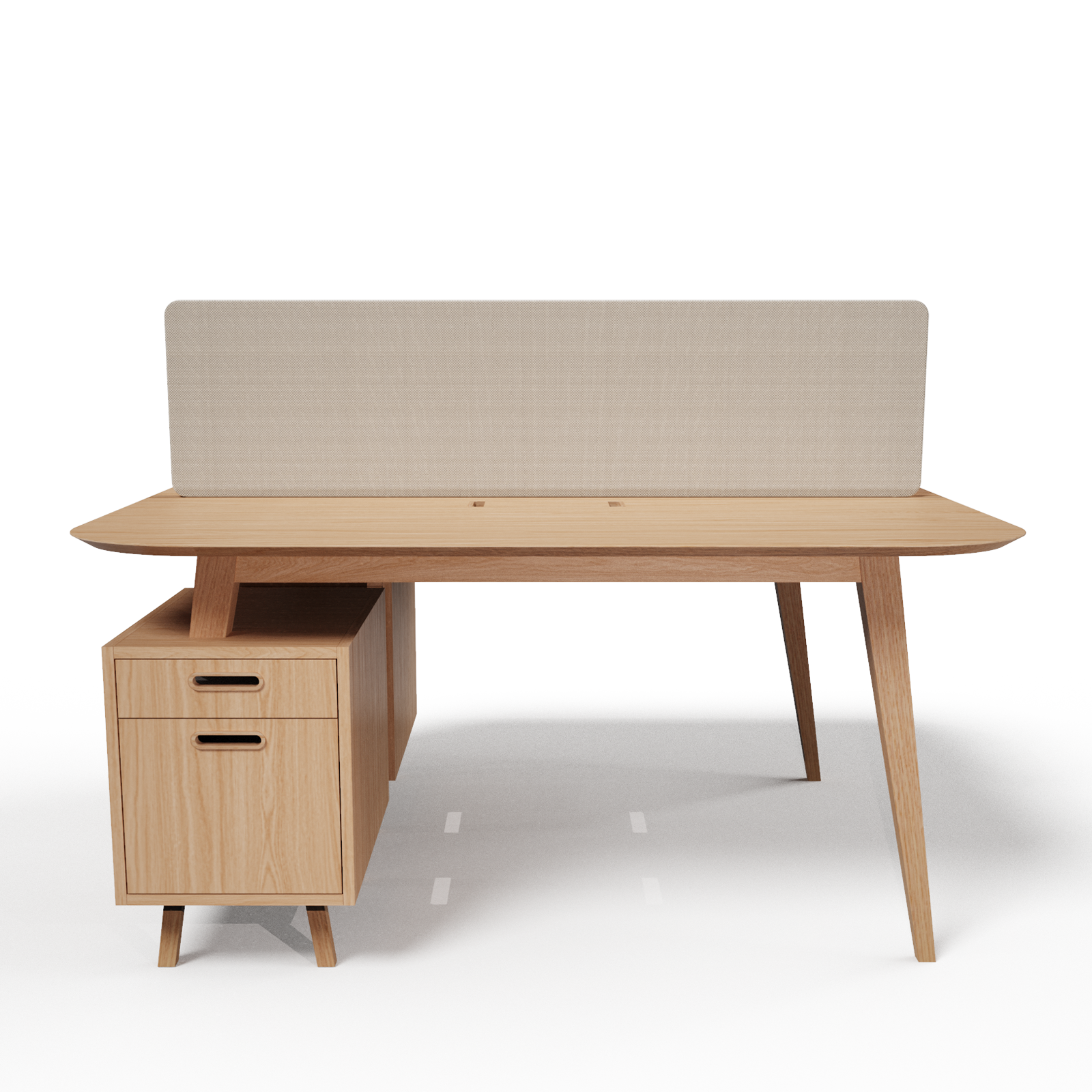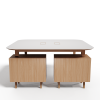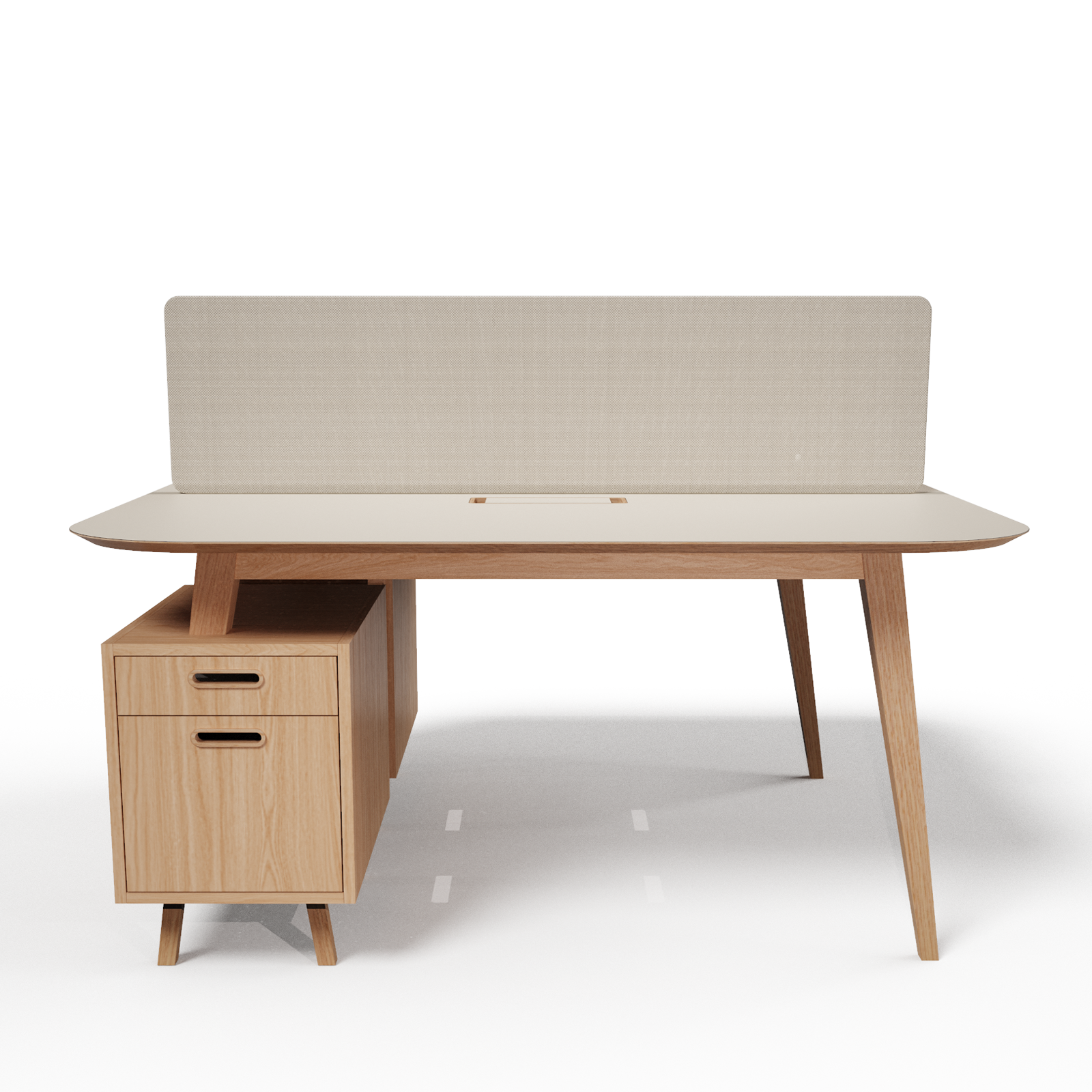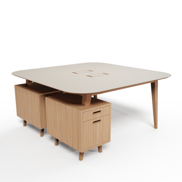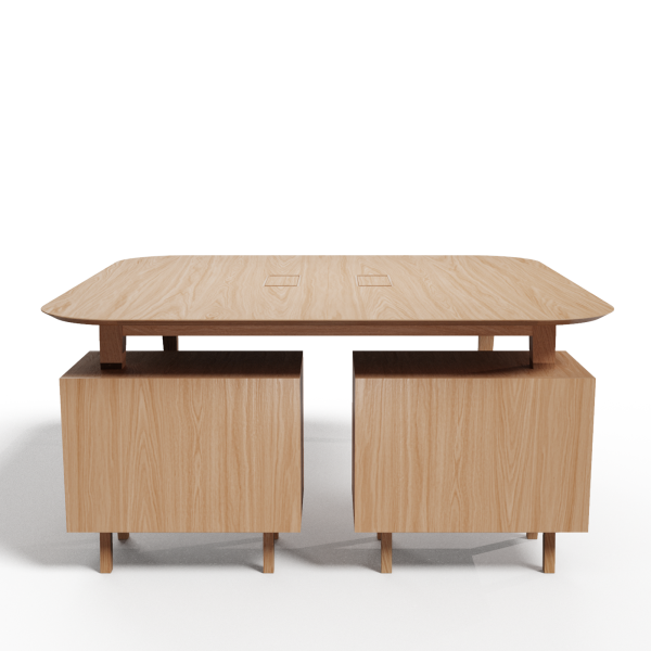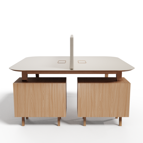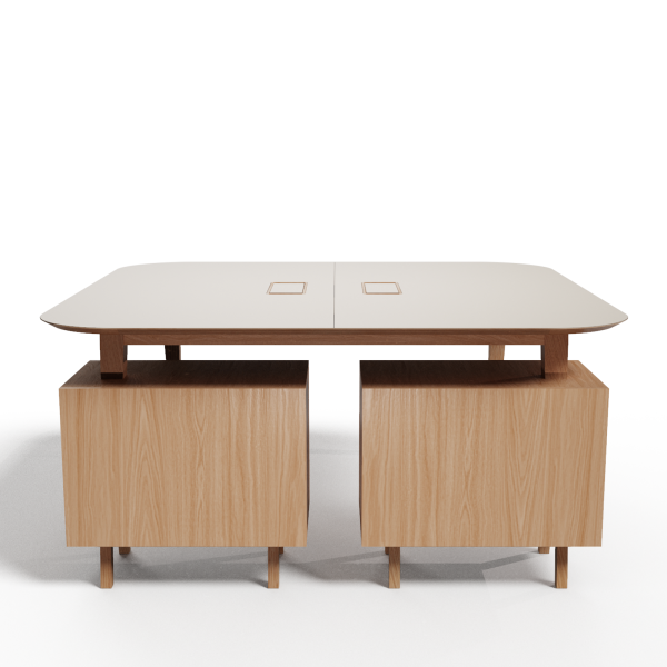 mit der Schreibtischplatte, Griffe aus Massivholz. Die Auszüge sind mit dem Silent System ausgestattet, das eine Verlangsamung am Ende des Auszugs ermöglicht, um ein sanftes und gedämpftes Schließen der Schublade zu gewährleisten.