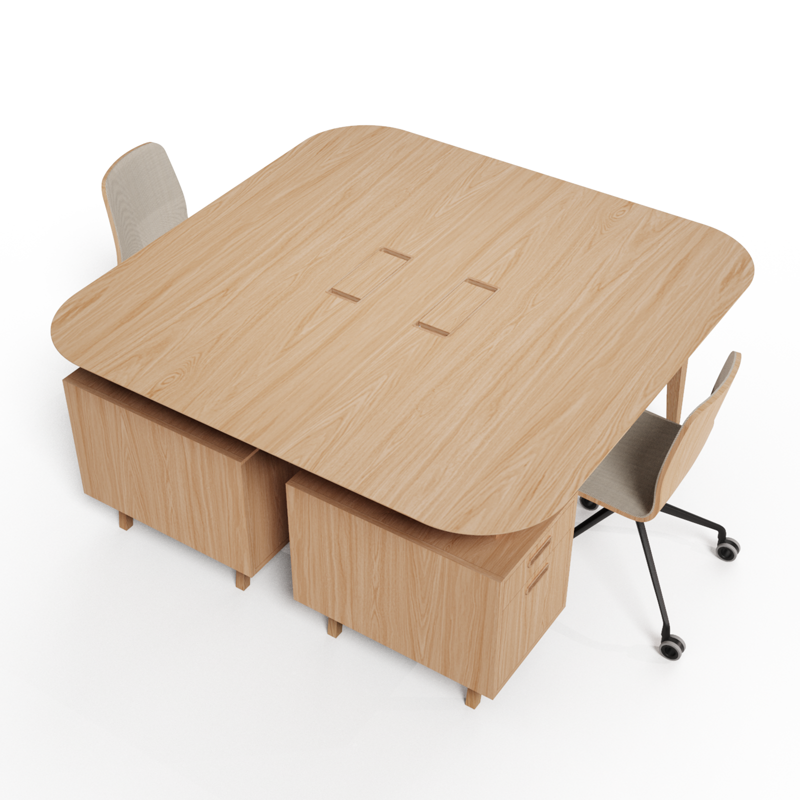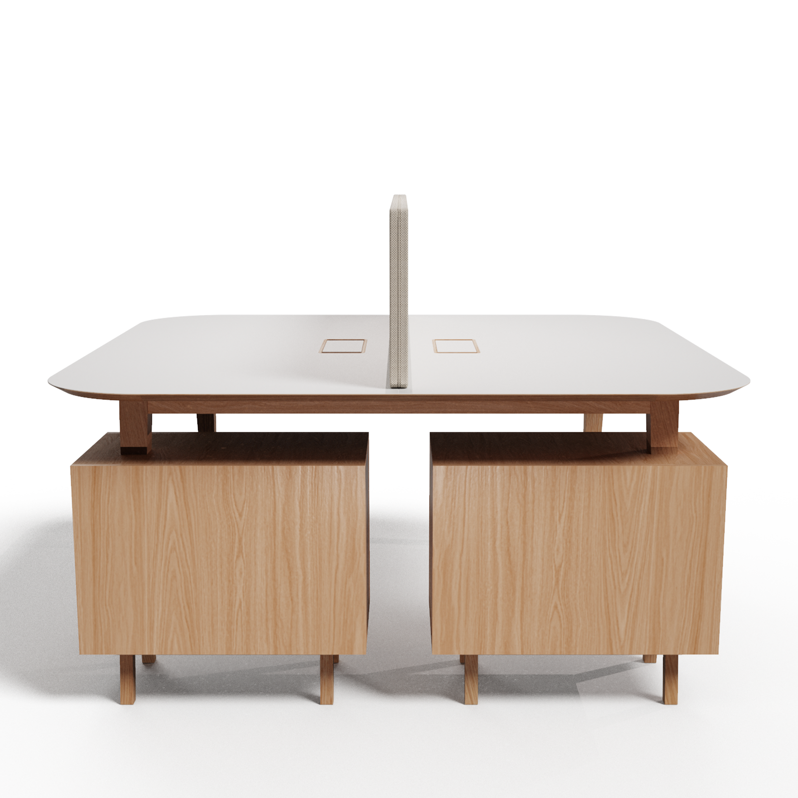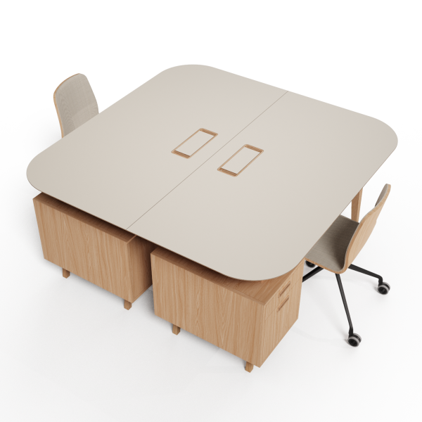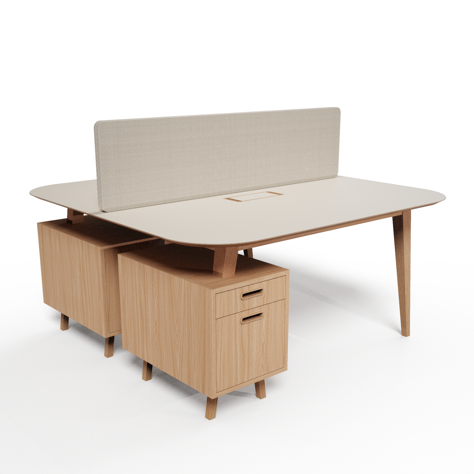mit der Schreibtischplatte, Griffe aus Massivholz. Die Auszüge sind mit dem Silent System ausgestattet, das eine Verlangsamung am Ende des Auszugs ermöglicht, um ein sanftes und gedämpftes Schließen der Schublade zu gewährleisten.