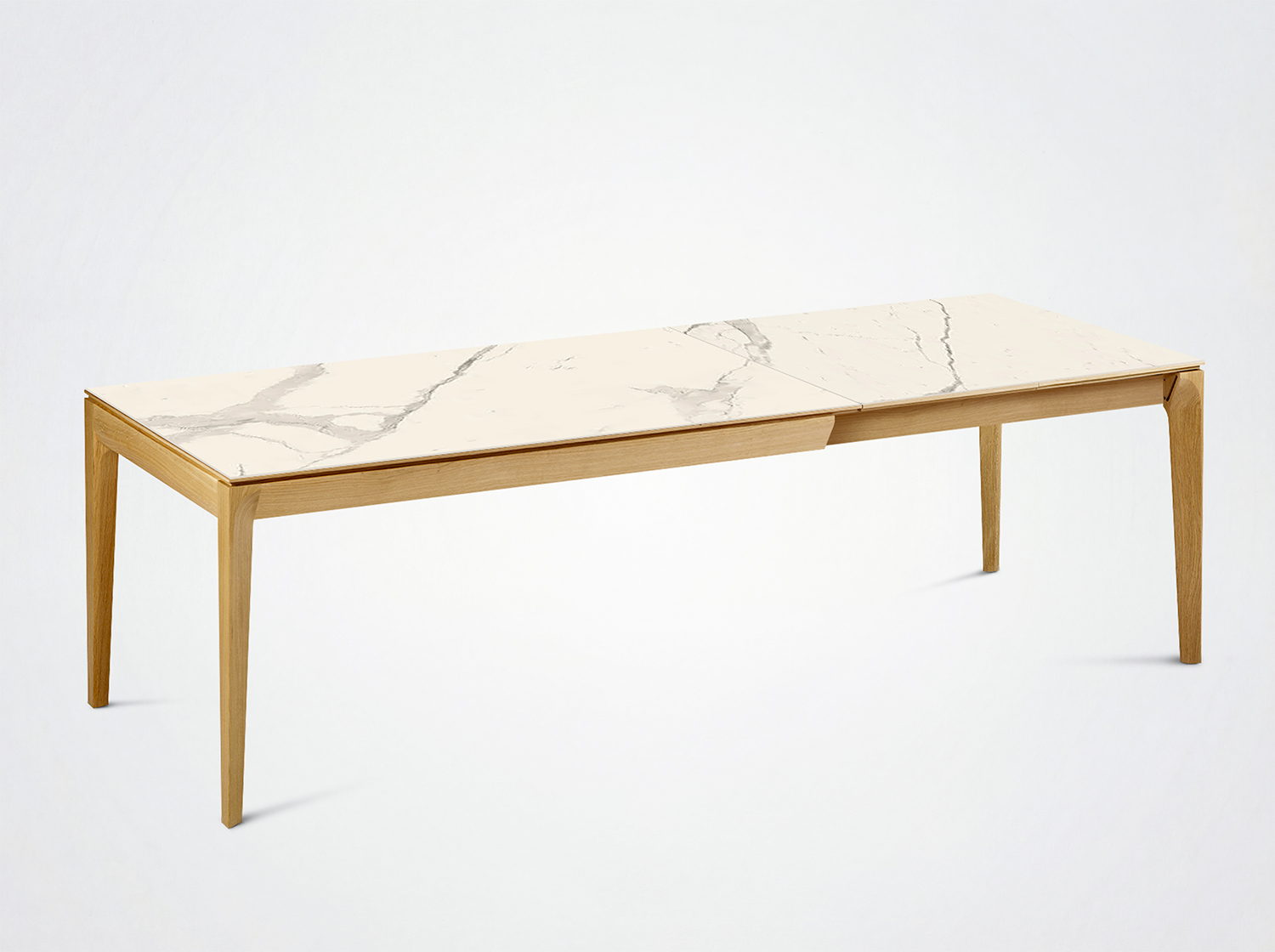 Der ausziehbare Tisch Buzz ist ein vielseitiger Entwurf des Designers Didier Versavel. Er ist in zwei Holzarten erhältlich und die Tischplatte kann aus Holz oder Keramik sein. Mit seinen unterschiedlichen Abmessungen kann der Tisch sowohl als Esstisch als auch als Konferenztisch verwendet werden und passt sich so den jeweiligen Bedürfnissen an.