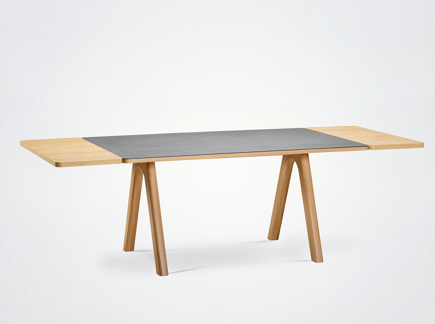 Der Chevron Ausziehtisch ist ein Entwurf des Designers Guillaume Delvigne, der von Elementen der Tischlerei inspiriert wurde. Er ist in verschiedenen Größen und Ausführungen erhältlich. Als Esstisch, Küchentisch oder Arbeits-/Besprechungstisch kombiniert der Chevron Tisch ein elegantes Design mit einer großen Vielseitigkeit.
