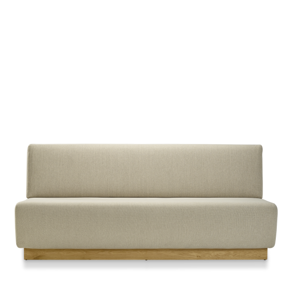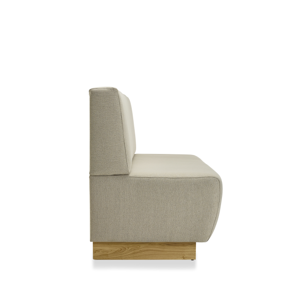 Die Bank Socle ist eine elegante Kreation, die ihren Namen von ihrem markanten Holzsockel hat. Mit einem breiten und tiefen Sitzkissen und einer geraden Rückenlehne bietet diese Bank eine bequeme Sitzgelegenheit für Warte-, Entspannungs- oder Empfangsbereiche.