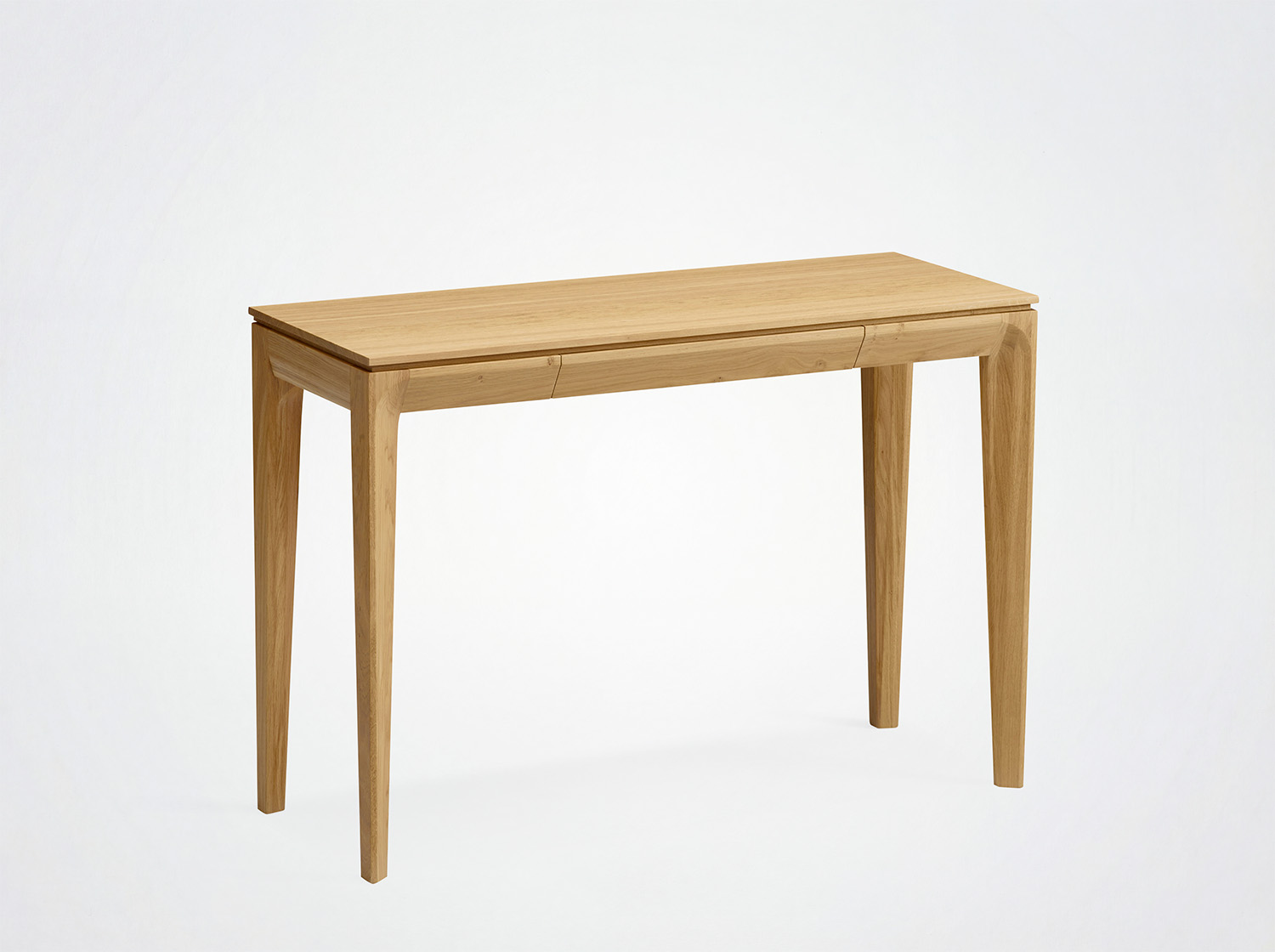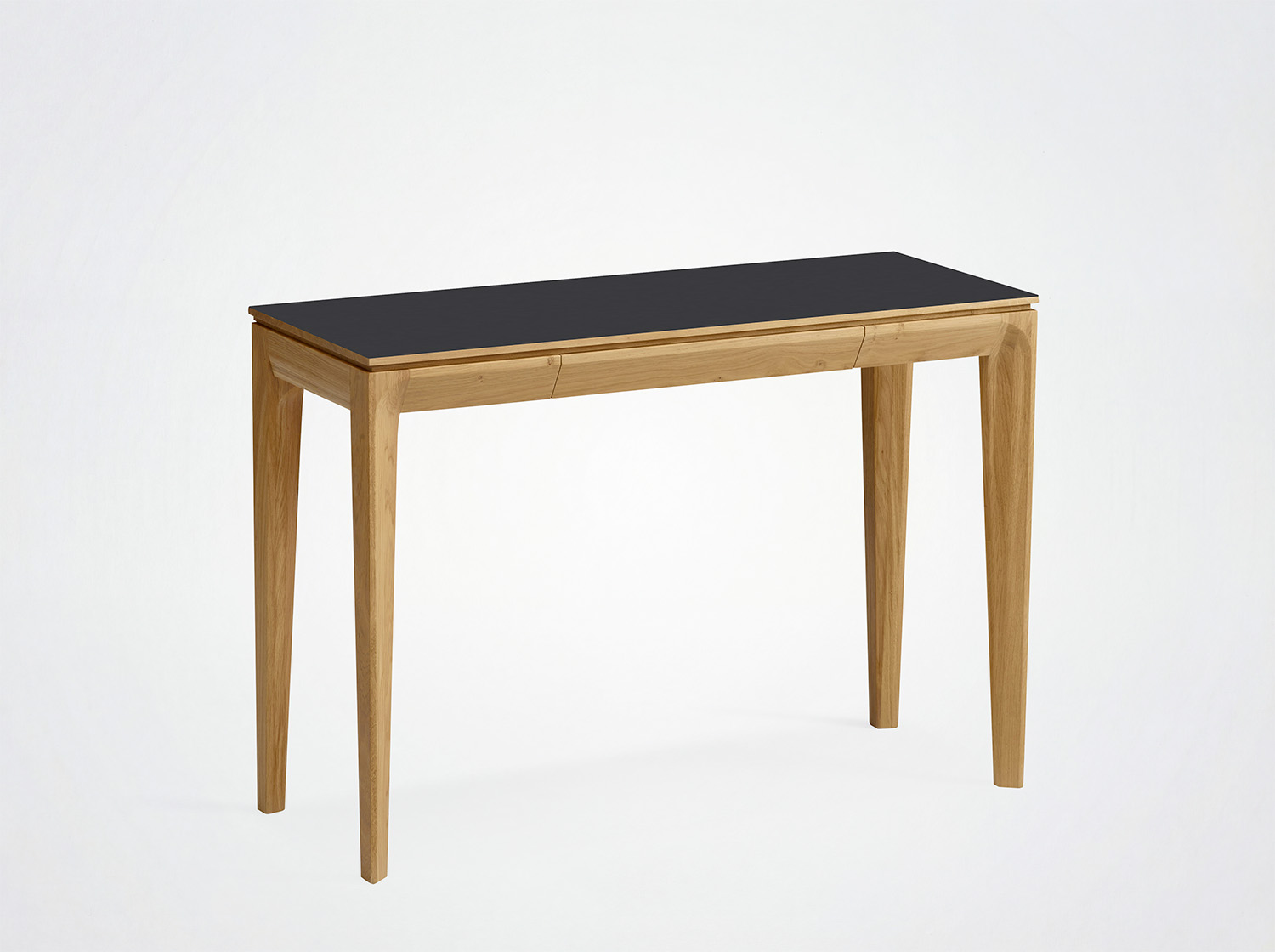 Beine, Gürtel und Schubladenfront aus Massivholz.