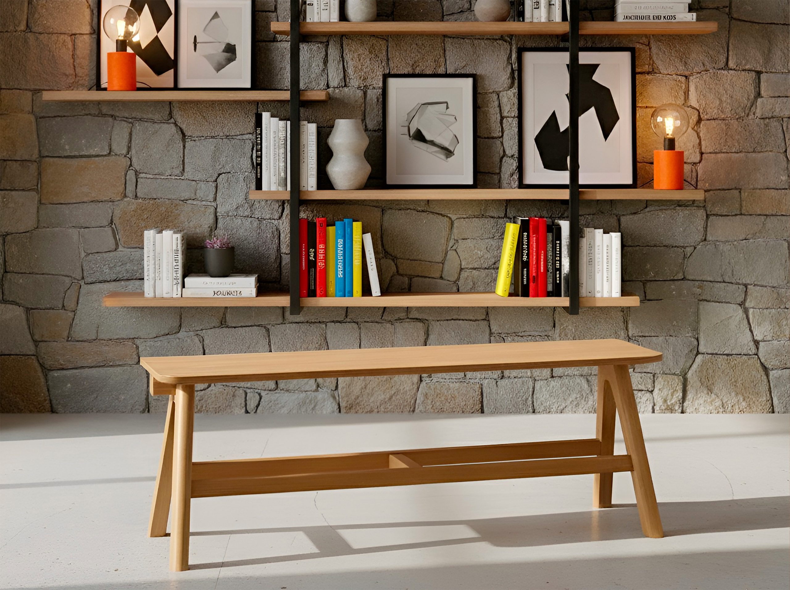Die Chevron Bank ist ein Werk des Designers Guillaume Delvigne. Diese Bank zeichnet sich durch ihre klaren Linien und ihr funktionales Design aus. Inspiriert von Elementen der Tischlerei, insbesondere von den Beinen, die an Balken erinnern, verleiht sie jedem Raum einen modernen Touch.