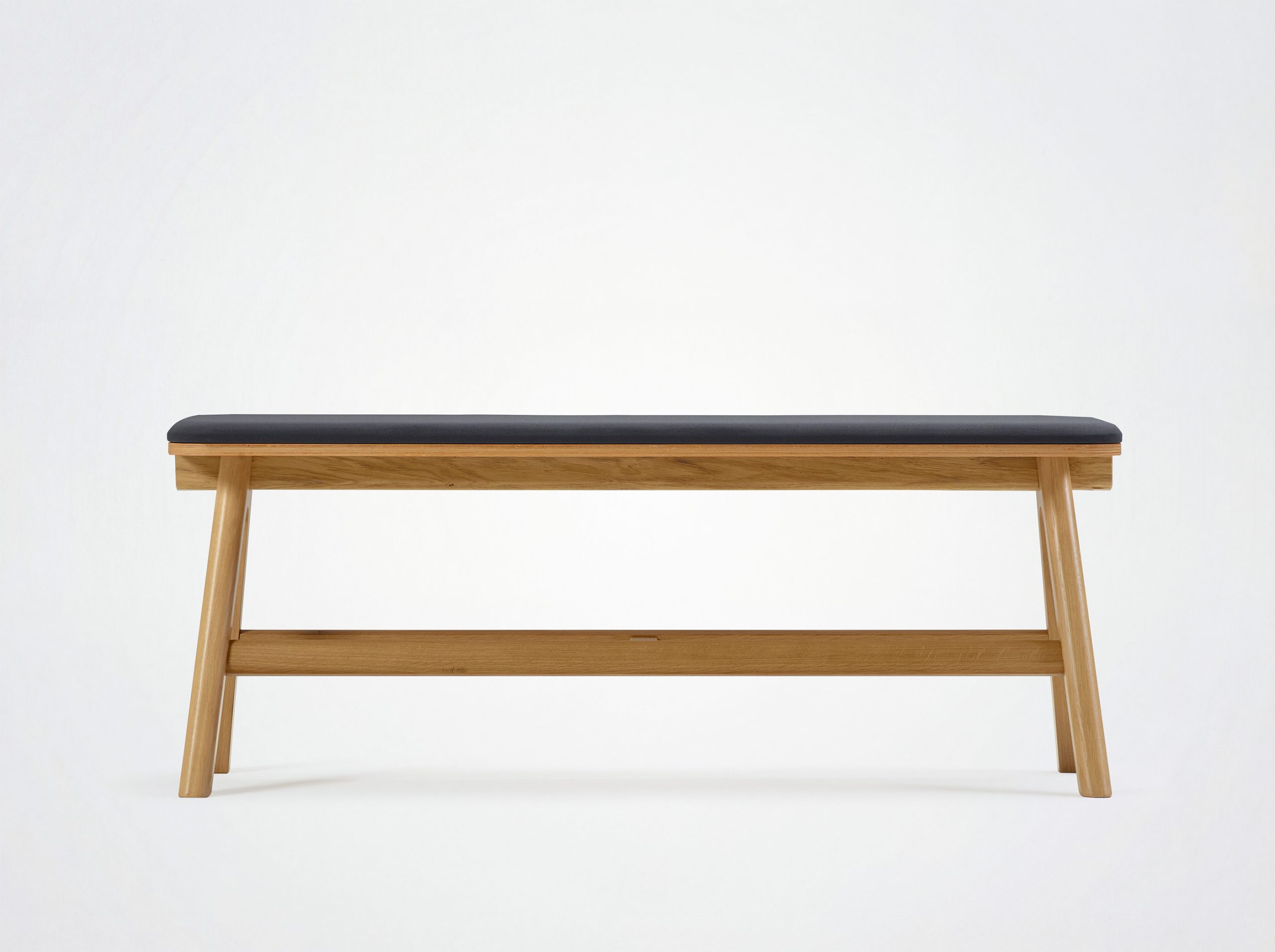Stoffversion: Sitz aus 22 mm Mdf mit massiven Unterlagen. Die Sitzfläche besteht aus einem 10 mm starken Placet, das mit 20 mm MH40-Schaumstoff gepolstert und mit einem Bezug Ihrer Wahl versehen ist.