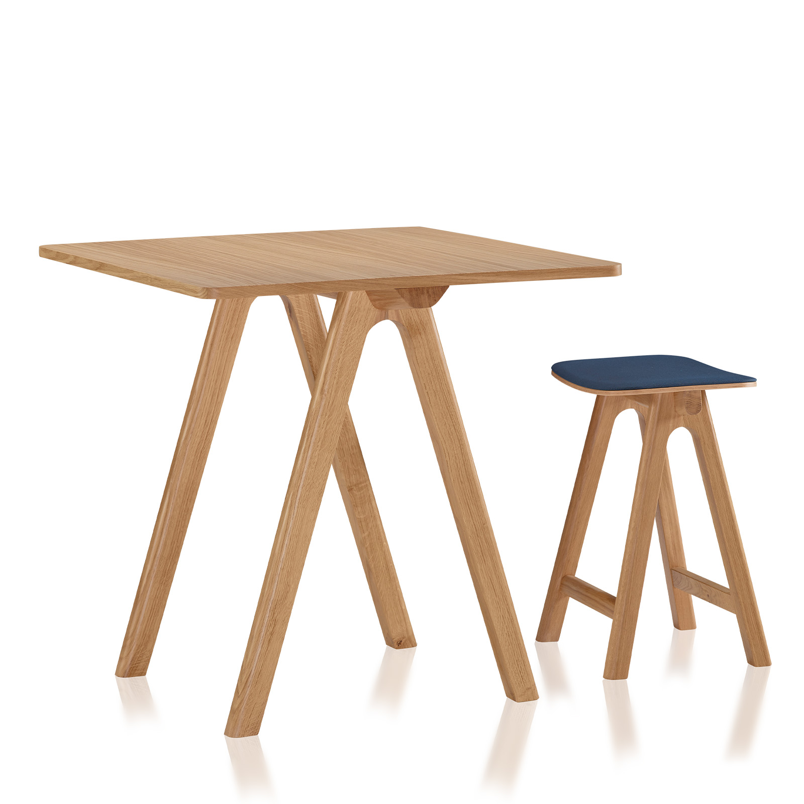 Der Hocker Chevron H60 cm hat ein schlichtes Design, das von der Tischlerei inspiriert ist, mit Beinen, die an Balken erinnern. Der Hocker kann mit einer Sitzfläche aus Holz oder Stoff personalisiert werden und bietet eine Höhe von 60 cm, die sich für verschiedene Zwecke eignet, z.B. für eine Bar, eine Kücheninsel oder als Sitzgelegenheit an einem hohen Tisch.