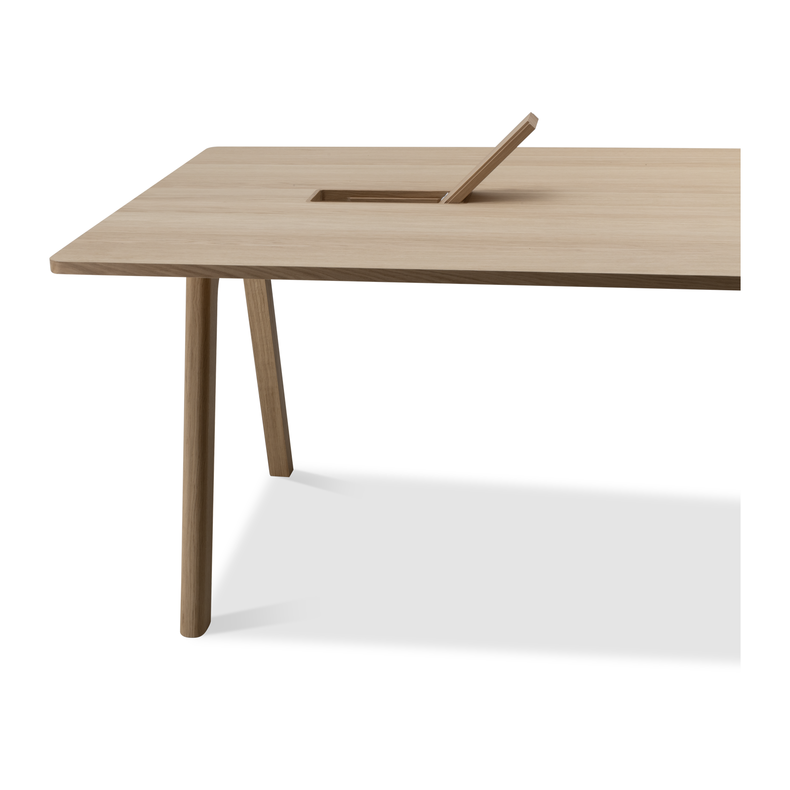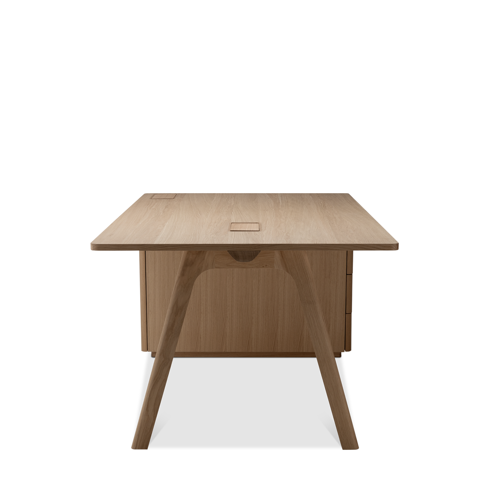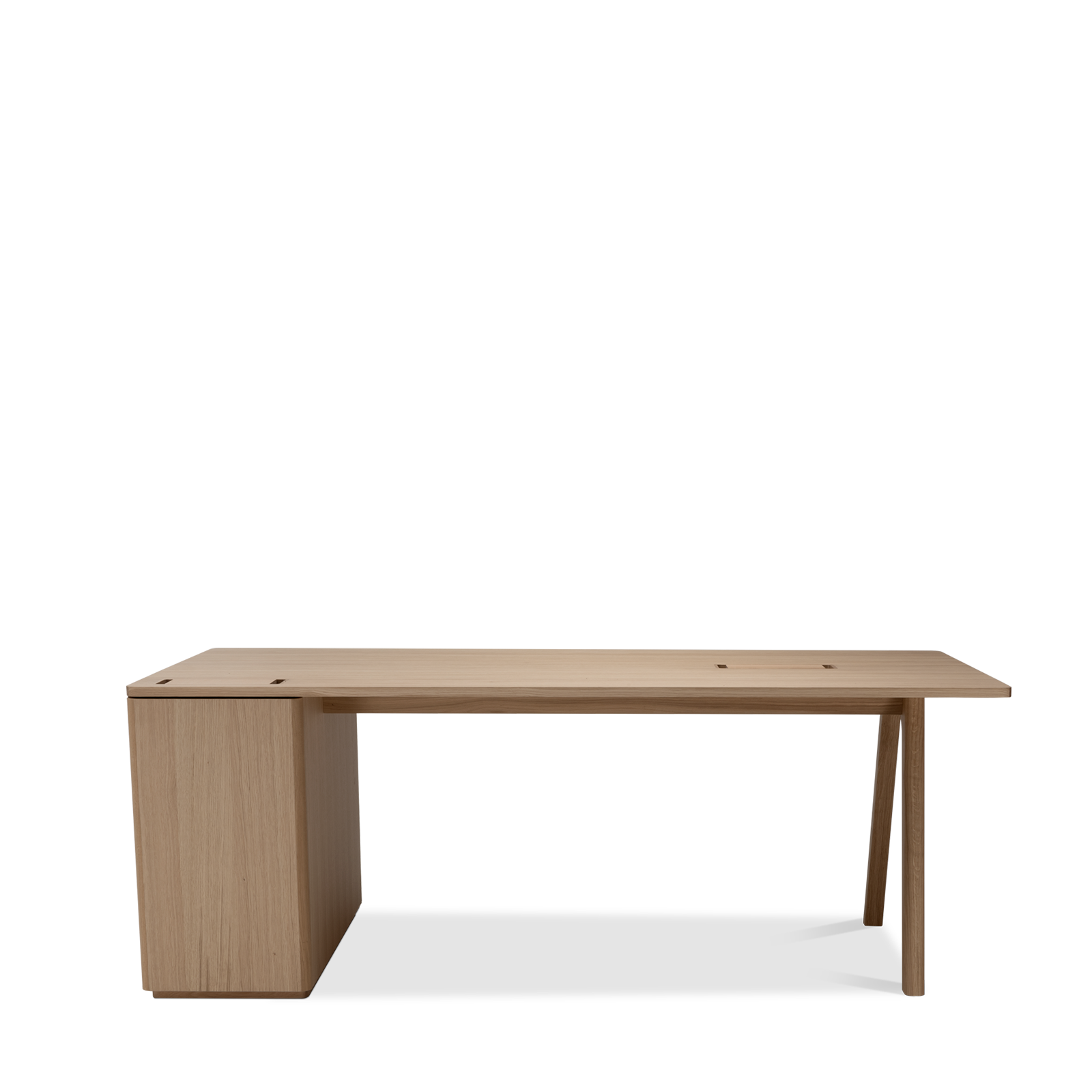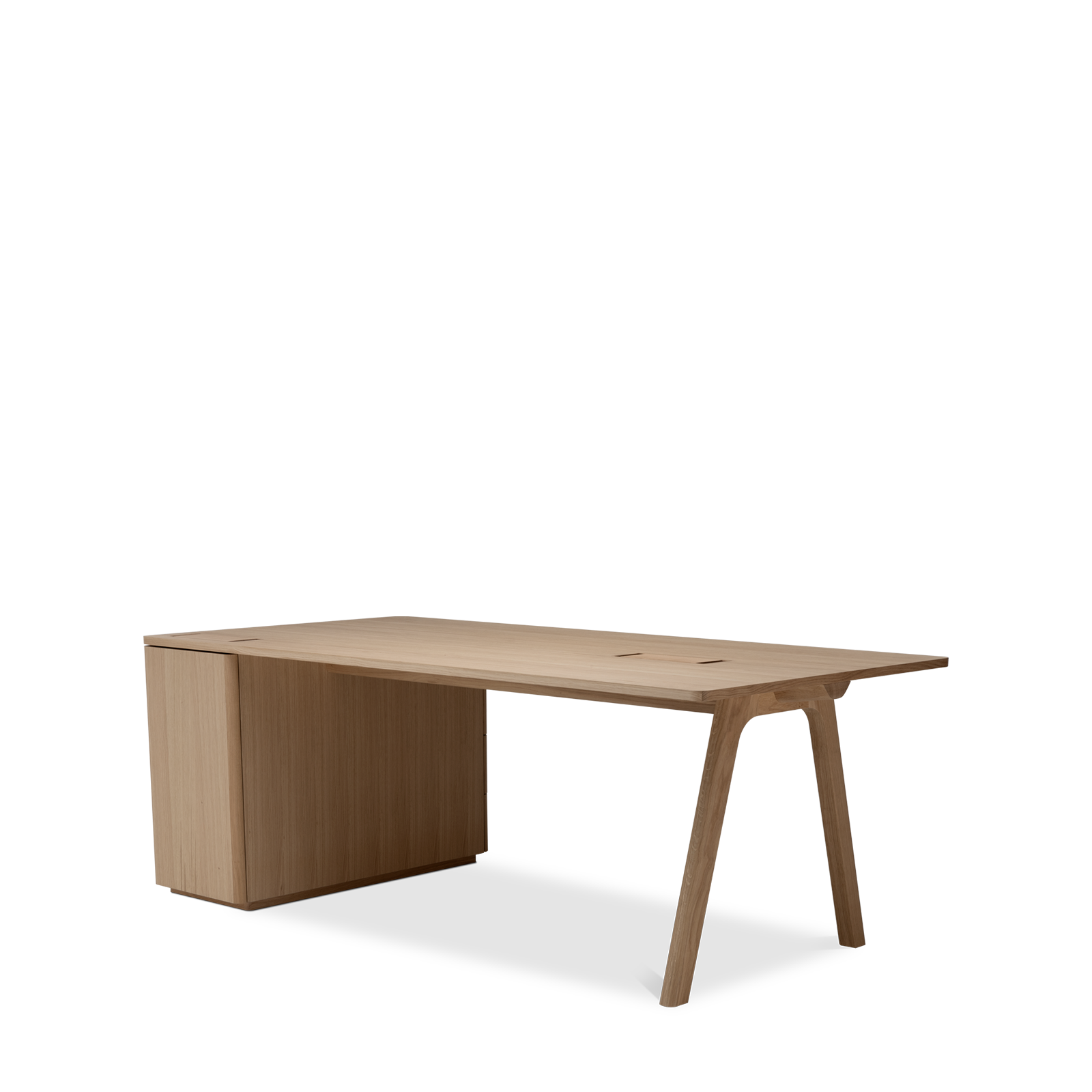 Der Chevron Chefschreibtisch, ein Entwurf des Designers Guillaume Delvigne, verkörpert Einfachheit und Wesentlichkeit in seinem Design. Inspiriert von Elementen der Tischlerei, insbesondere von den Beinen, die an Balken erinnern, vereint dieser große Schreibtisch Zweckmäßigkeit und Ästhetik, um sich in jeden Raum einzufügen.