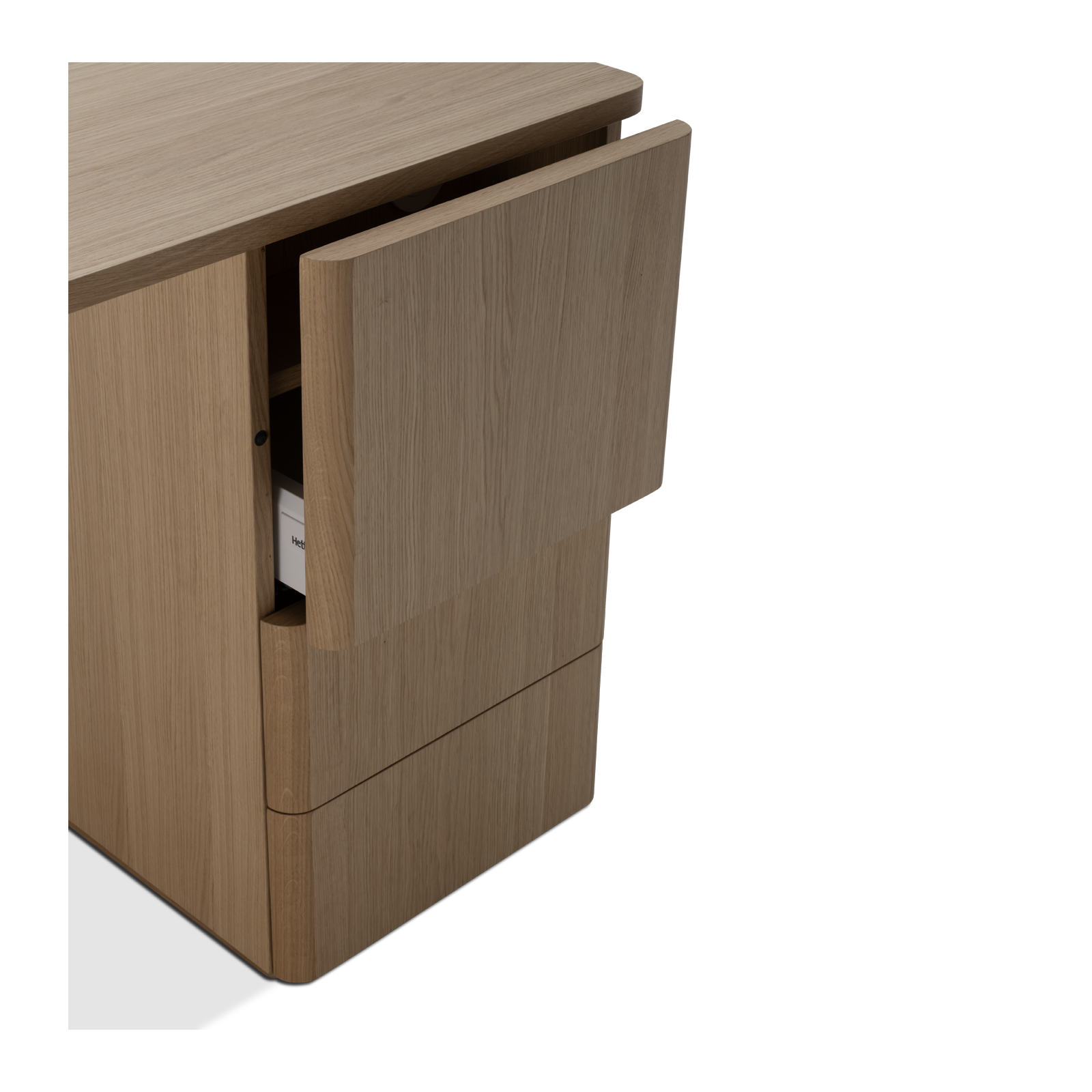 Korpus und Schubladenfronten sind furniert.