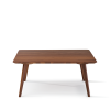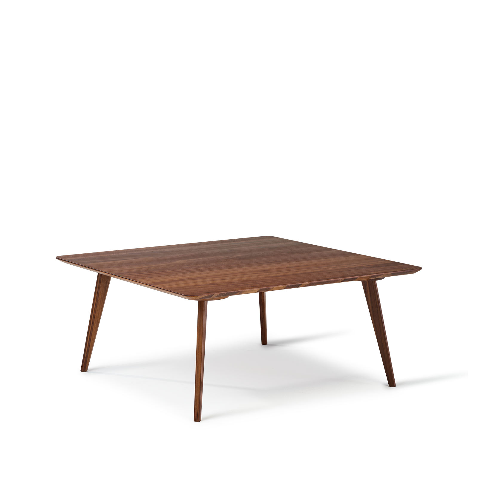 Beine aus Massivholz, Tischplatte mit Flugzeugflügelkante (M5).