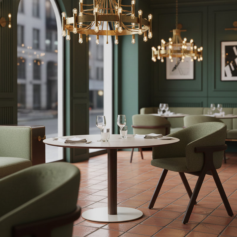 Der Tisch Fût ist ein Stück, dessen Design von Bistrotischen inspiriert ist. Sein schlichtes Design und das schlanke Gestell ergeben ein harmonisches Gesamtbild, das traditionelle Handwerkskunst und modernes Design in Einklang bringt. Bei diesem Tisch können Sie die Tischplatte individuell gestalten und aus einer Vielzahl von Formen, Materialien, Zierleisten und Farbtönen wählen, um unterschiedlichen Bedürfnissen gerecht zu werden und sich perfekt in Ihr zukünftiges Ambiente einzufügen.
