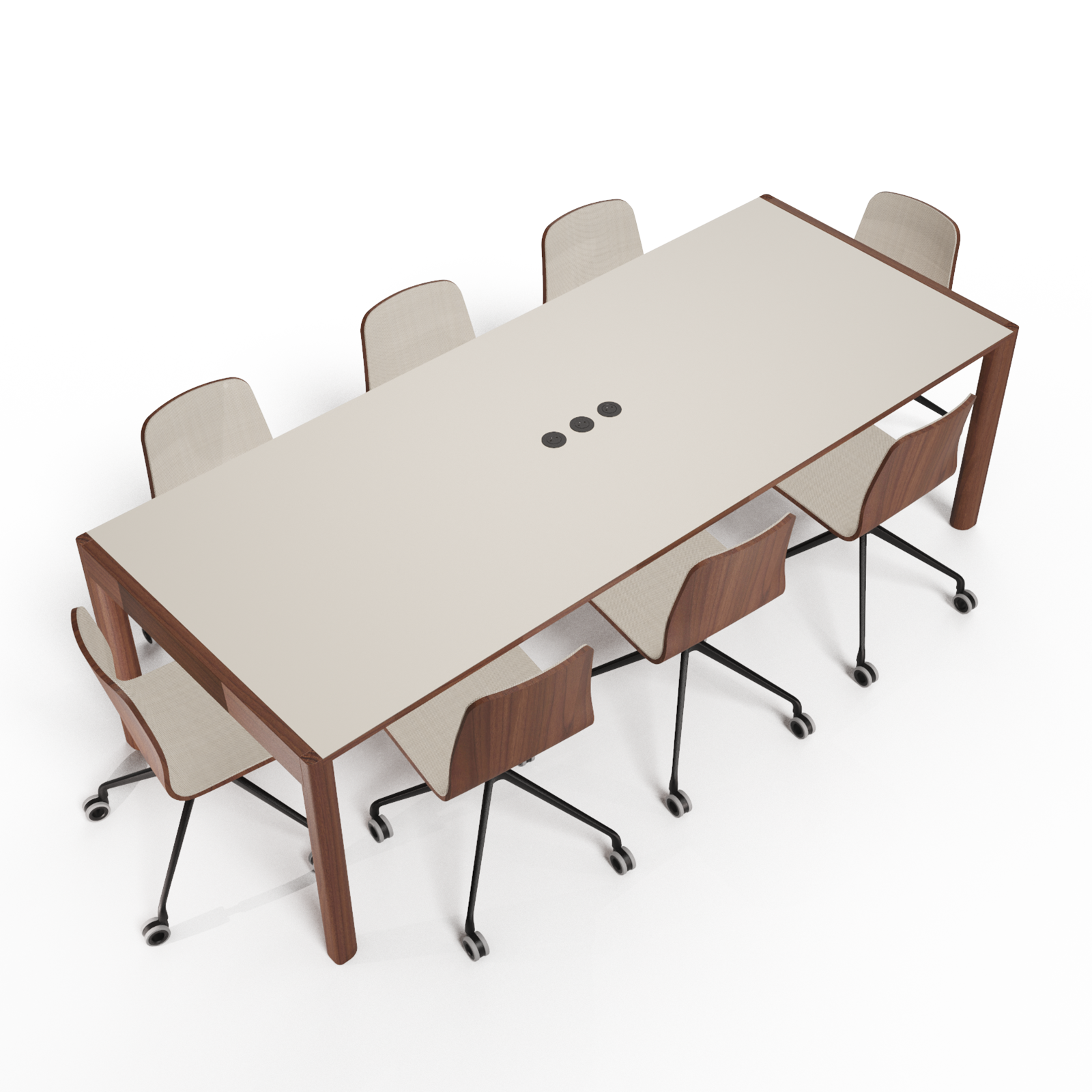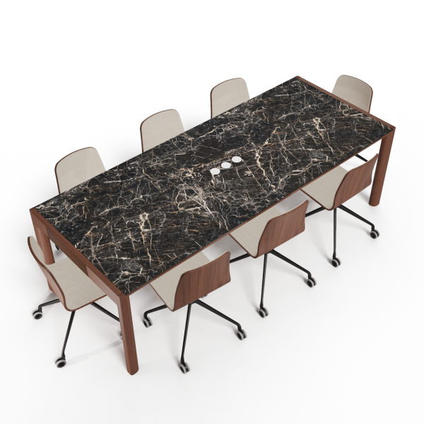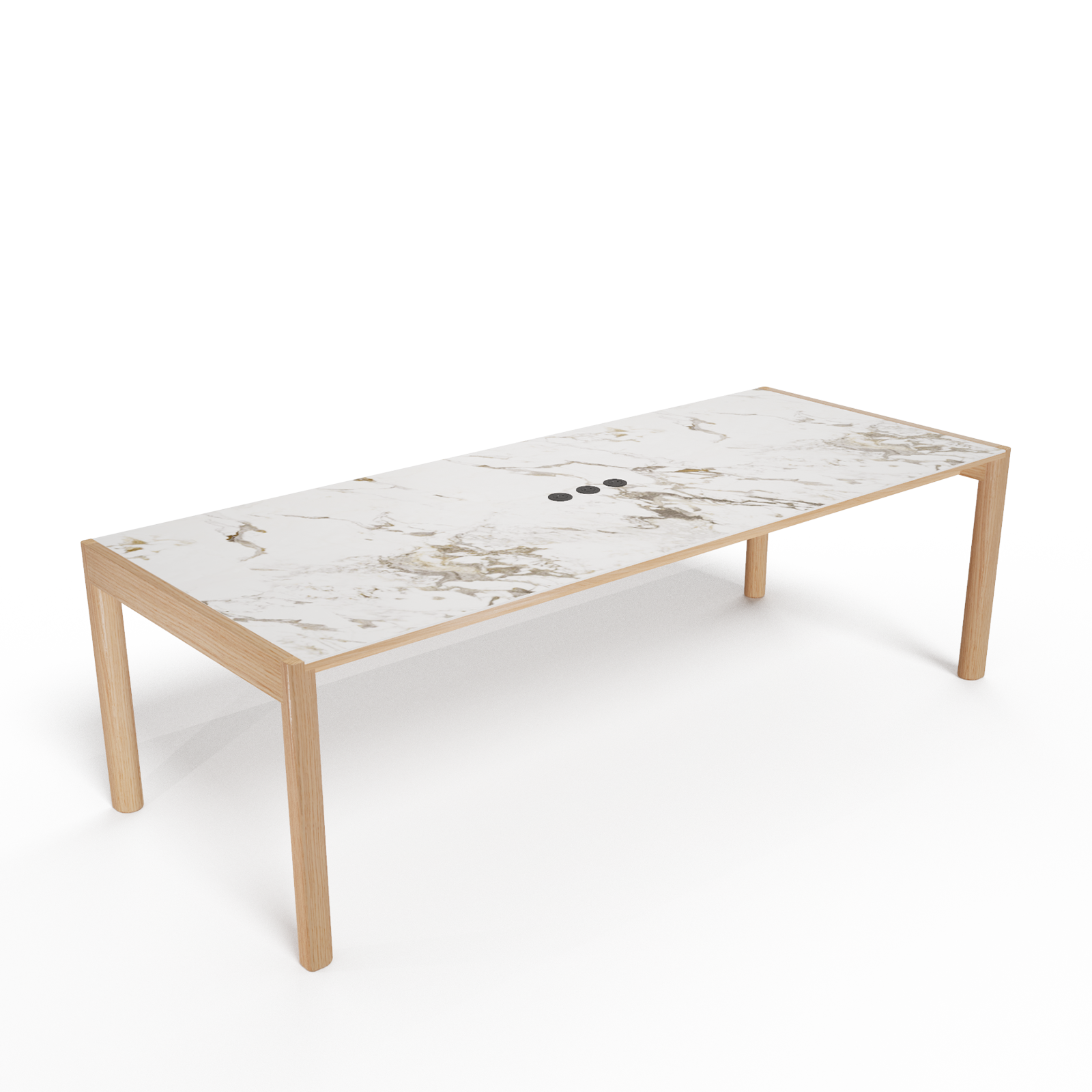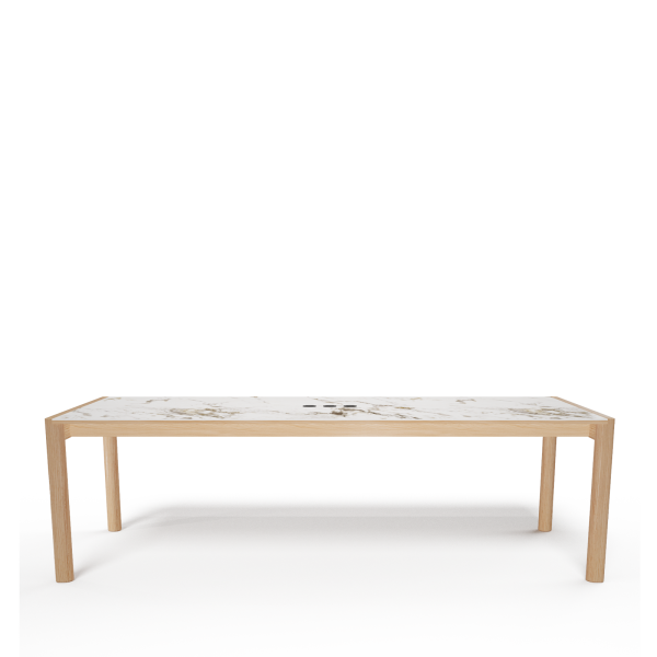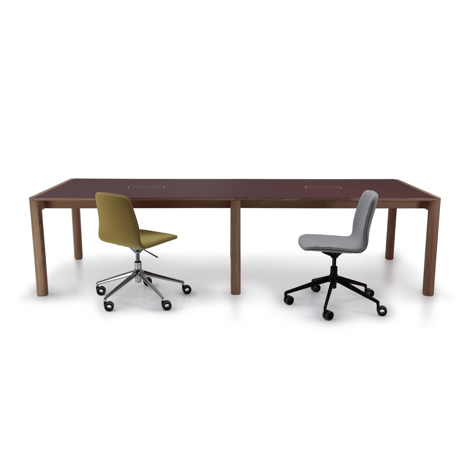Die Kollektion Rive, ein Entwurf des Studios Voisin Guillemin, verkörpert das perfekte Gleichgewicht zwischen den runden und weichen Formen eines Gestells, das ein Gegengewicht zu einer Tischplatte mit geraden und scharfen Linien bildet. Ein eleganter und minimalistischer Tisch, der sich in jeden Raum einfügt.