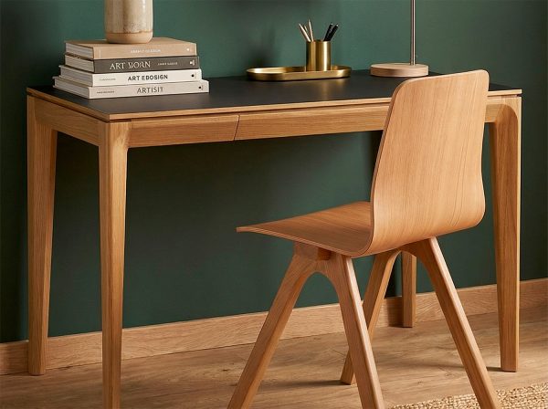 Der Schreibtisch Buzz von Dasras ist ein Entwurf des Designers Didier Versavel. Dieser elegante und funktionale Schreibtisch ist in Eiche und Nussbaum mit einer Holz- oder Keramikplatte erhältlich. Er ist mit einer Schublade ausgestattet und hat eine Tiefe von 60 cm für einen optimalen Arbeitsplatz.