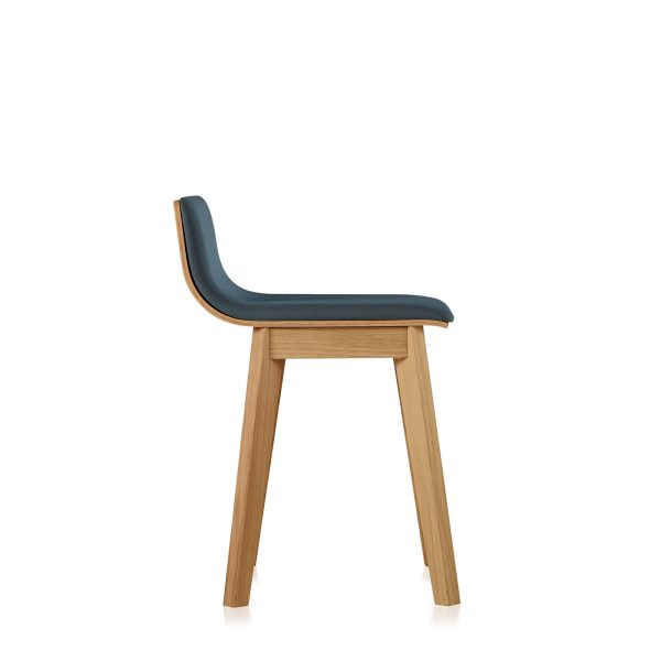 Stoffausführung: Schale aus geformtem Multiplexholz mit Eichenfurnier auf der Rückseite. Sitzfläche aus 3 mm Multiplex, gepolstert mit 20 mm MH40 Schaumstoff, gepolstert mit einem Bezug Ihrer Wahl.