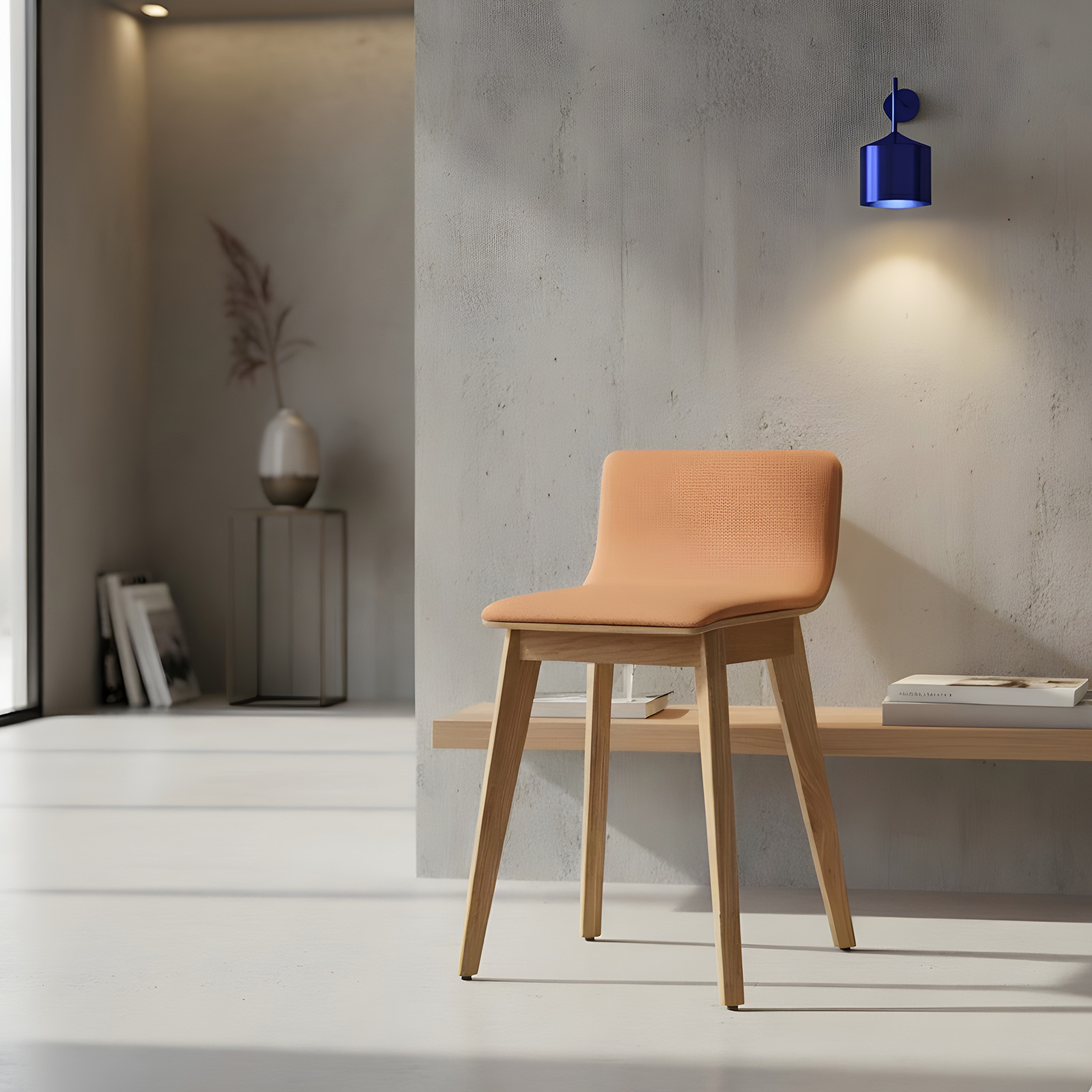 Der Hocker Snack verfügt über eine leichte Rückenlehne, die zusätzlichen Halt bietet, ohne die Bewegungsfreiheit zu beeinträchtigen. Dieser Hocker wurde entworfen, um Komfort und Stil in verschiedenen Räumen zu kombinieren. Mit seinem skandinavischen Design und der ergonomischen Form passt er perfekt zu einem Schreibtisch oder Küchentisch.