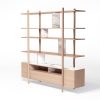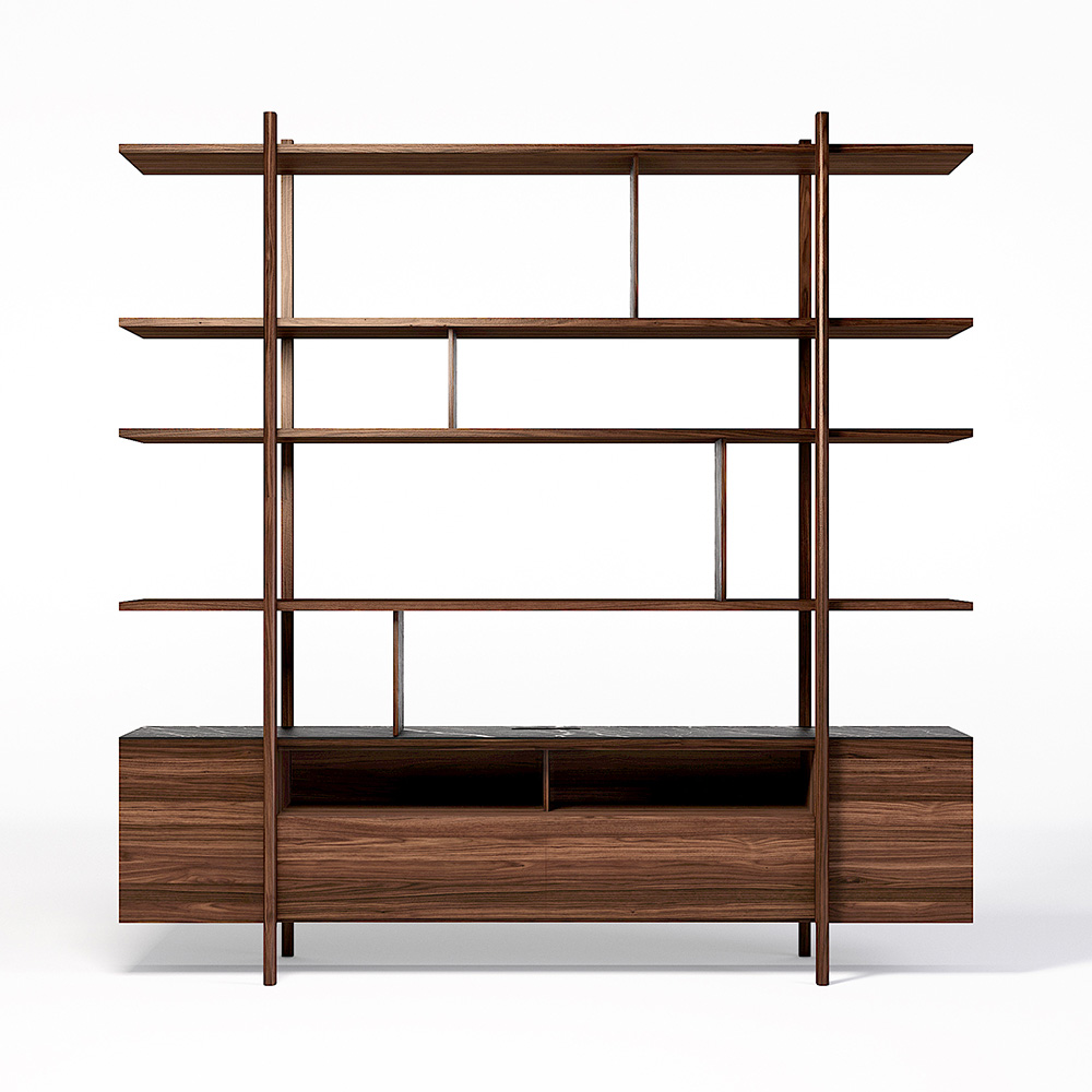 Sie ist von den Stelzen inspiriert, die von den baskischen Hirten verwendet wurden. Seine „Exoskelett“-Struktur ermöglicht es ihm, vielseitig zu sein und verschiedene Kompositionen, Kombinationen und Deklinationen anzubieten (Medienmöbel).
