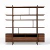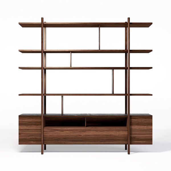 Bücherregal aus Eiche oder gebrauchtem Nussbaum mit schlichtem Design und zarten Linien.