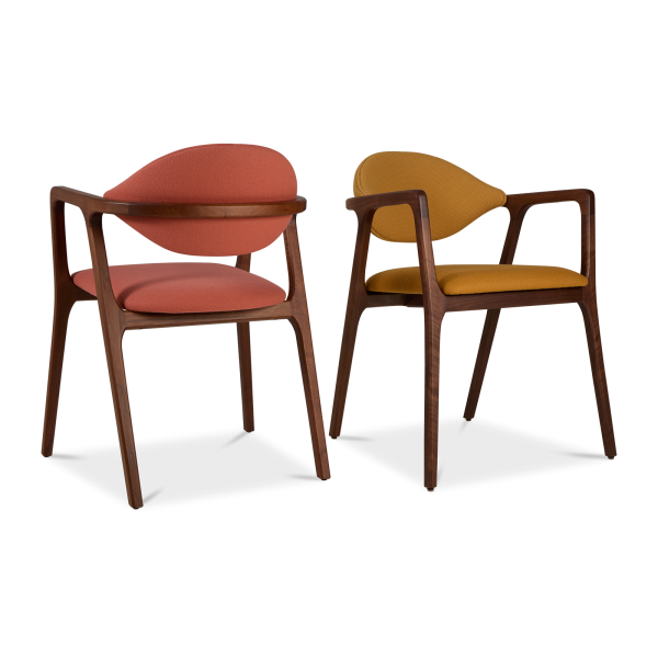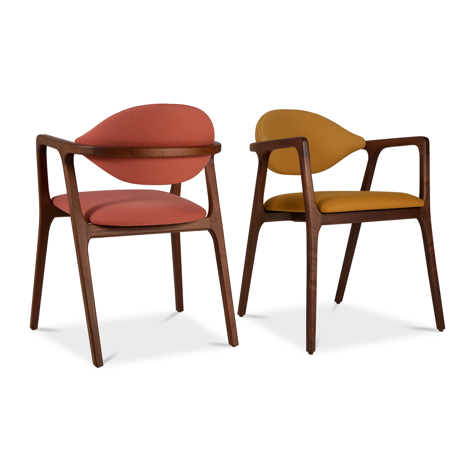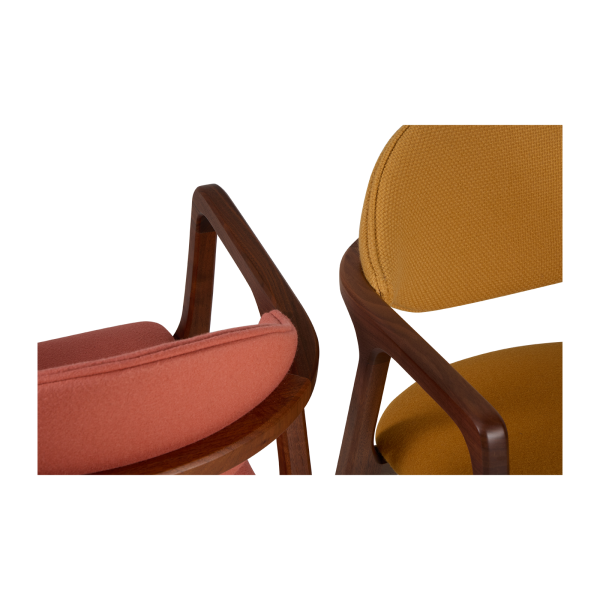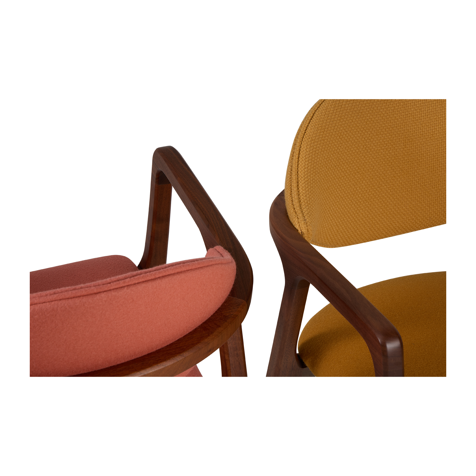 Entdecken Sie den Stuhl Eden, ein außergewöhnliches Stück mit einer Rückenlehne und Armlehnen aus Massivholz und einer Sitzfläche und Rückenlehne, die mit einem Stoff Ihrer Wahl bezogen sind. Dieser elegante, leichte und komfortable Stuhl passt zu jedem Inneneinrichtungsprojekt, bei dem Holz und Farbe kombiniert werden sollen. Er Er bietet eine unendliche Auswahl an subtilen und raffinierten Farbtönen, die dank der Qualität unserer Stoffe kräftig oder nuanciert sein können.