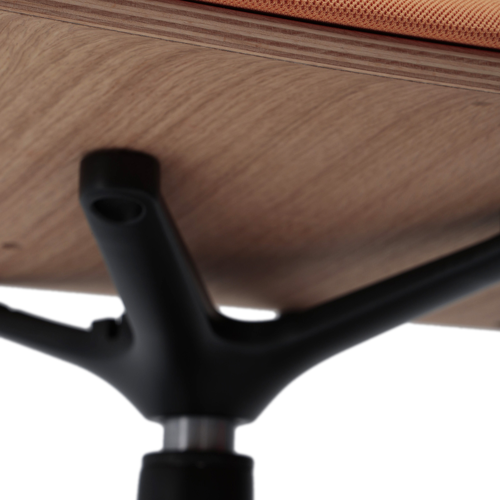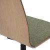 Mit Rückenlehne aus Eiche und gepolsterter Sitzfläche, bestehend aus einer geformten Multiplexschale mit Eichenfurnier auf der Rückseite, einer 3 mm Multiplexplatte, die mit 20 mm MH40 Schaumstoff gepolstert ist und mit einem Bezug Ihrer Wahl gepolstert ist.
