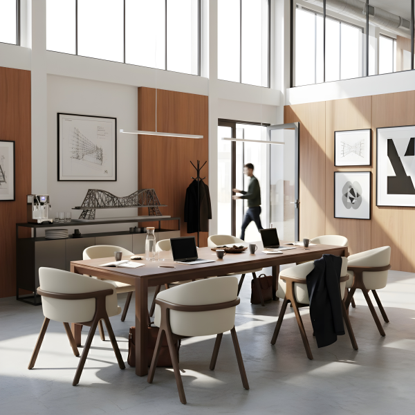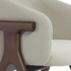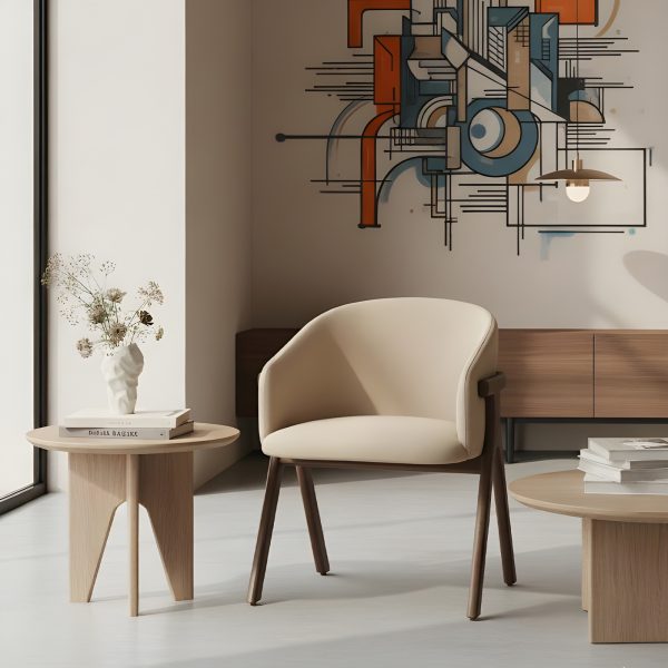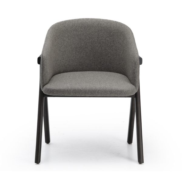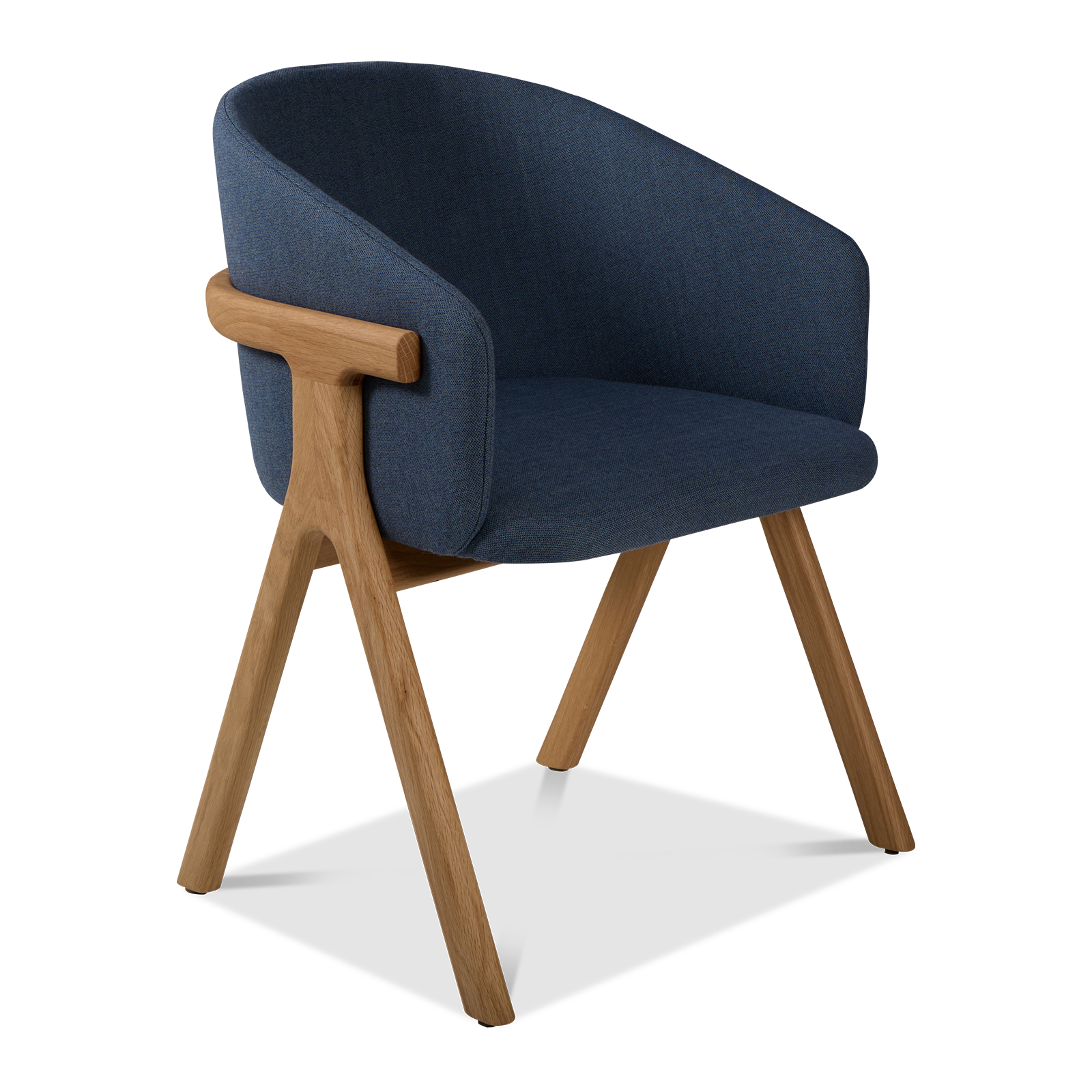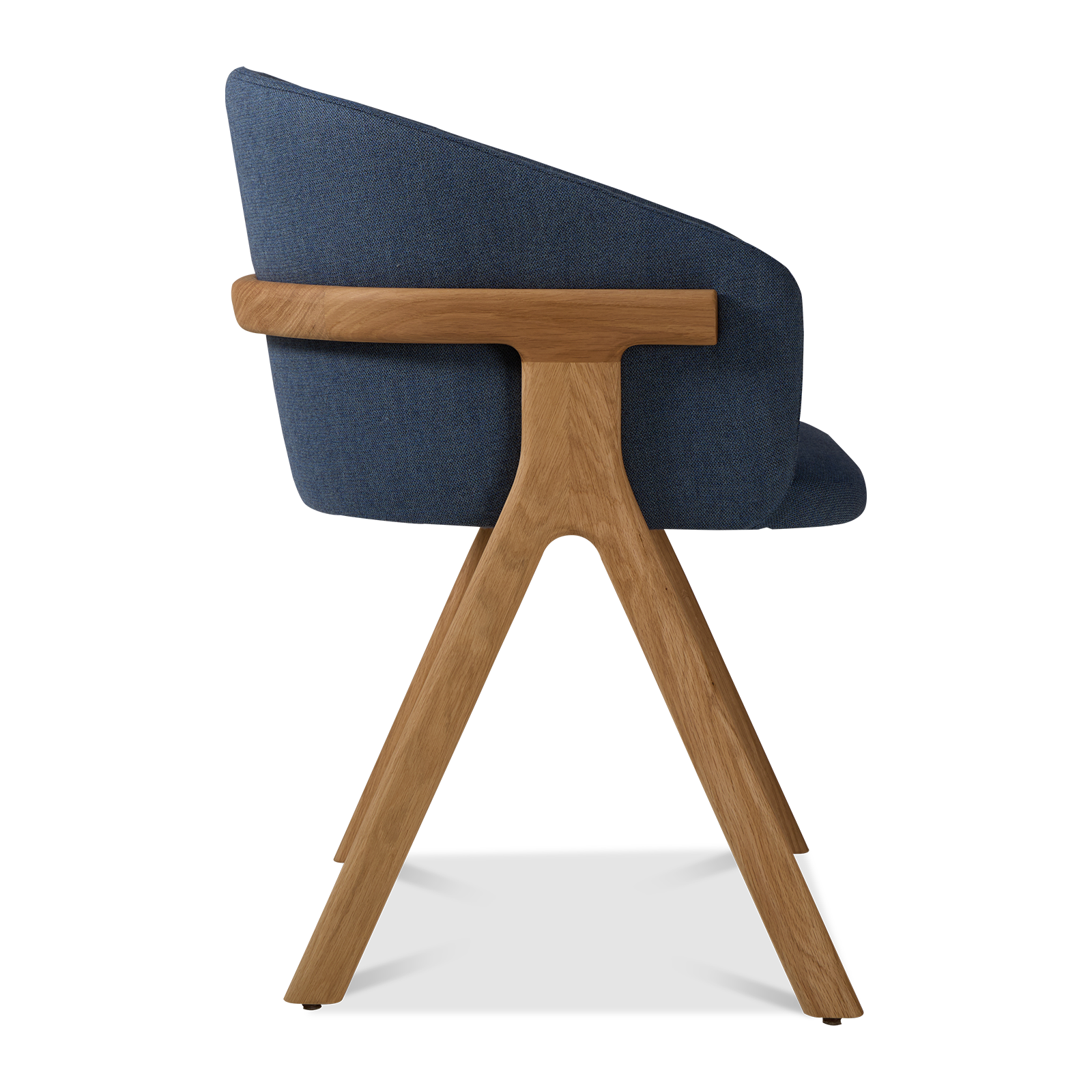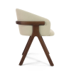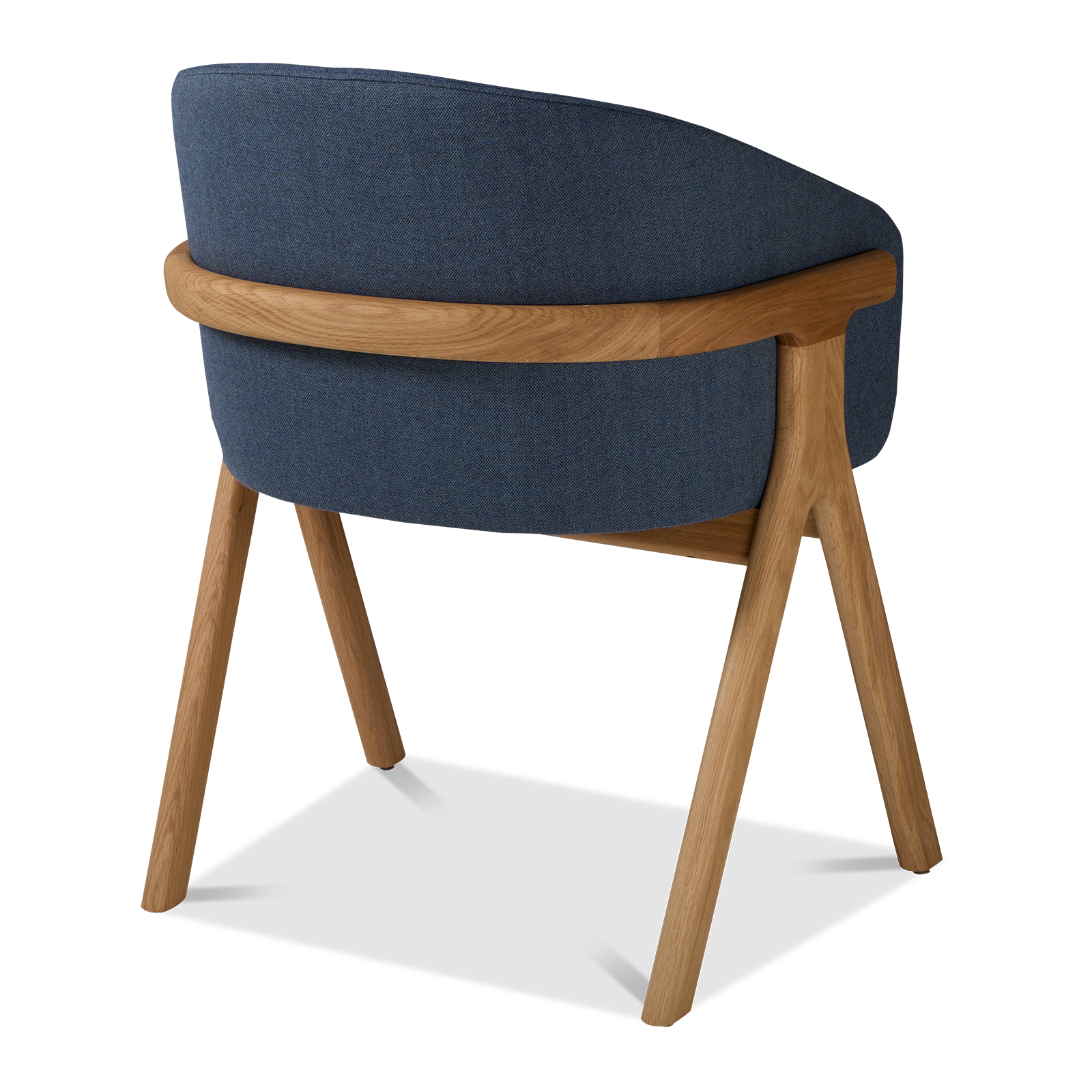 Der Stuhl Eora kombiniert Designstil mit Vintage-Einflüssen. Die breite, umhüllende Rückenlehne und die weichen, klaren Linien betonen die Kraft des Holzes.