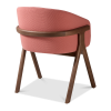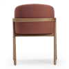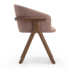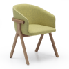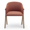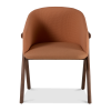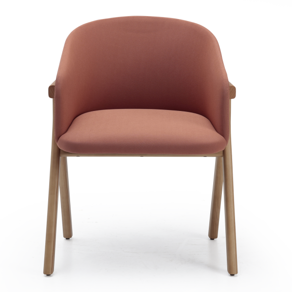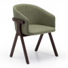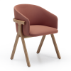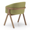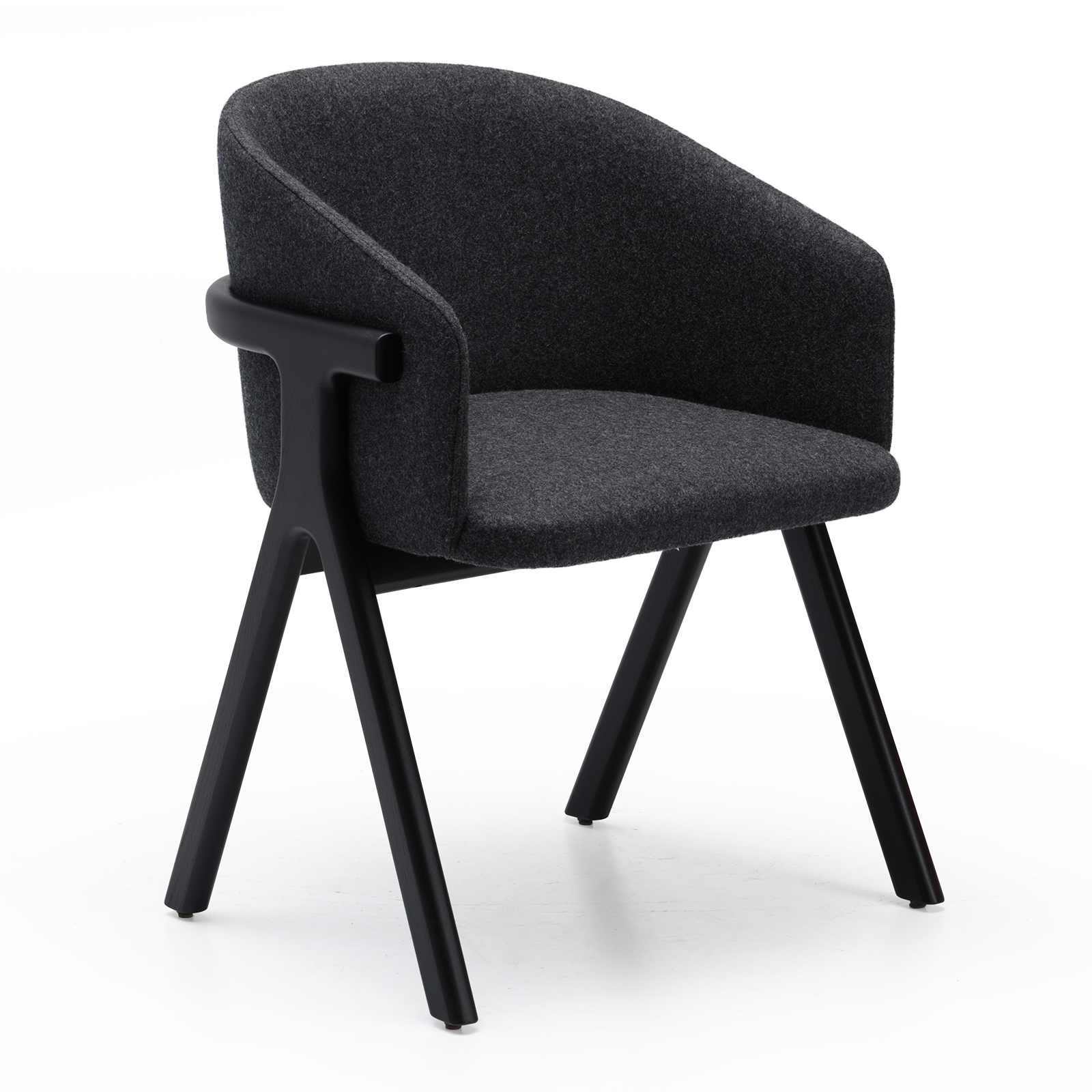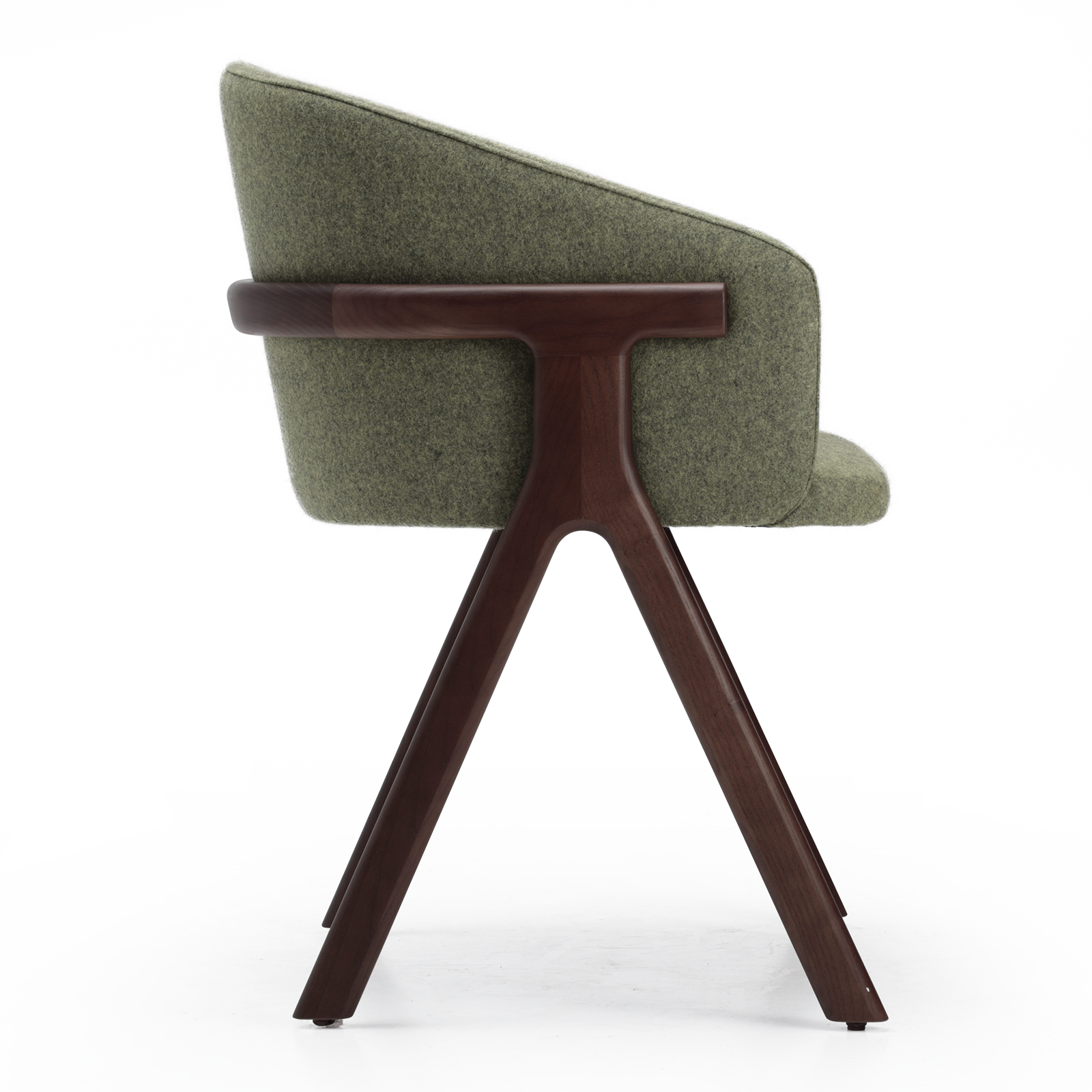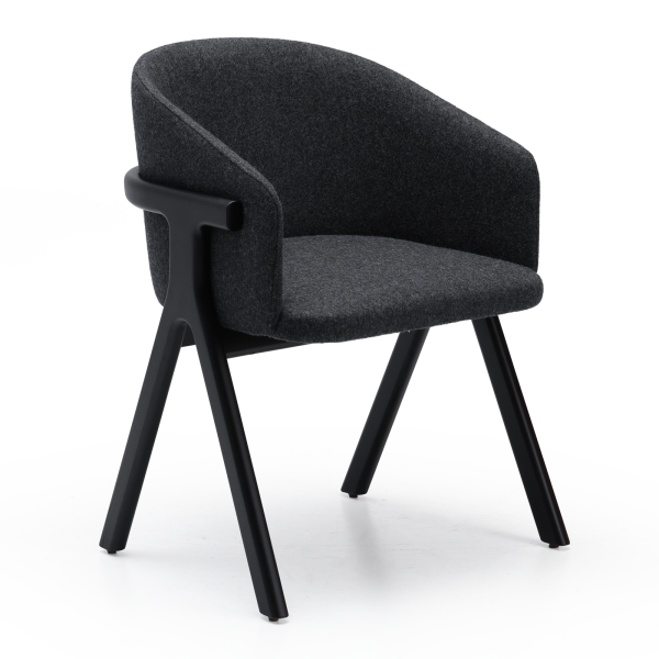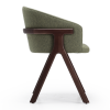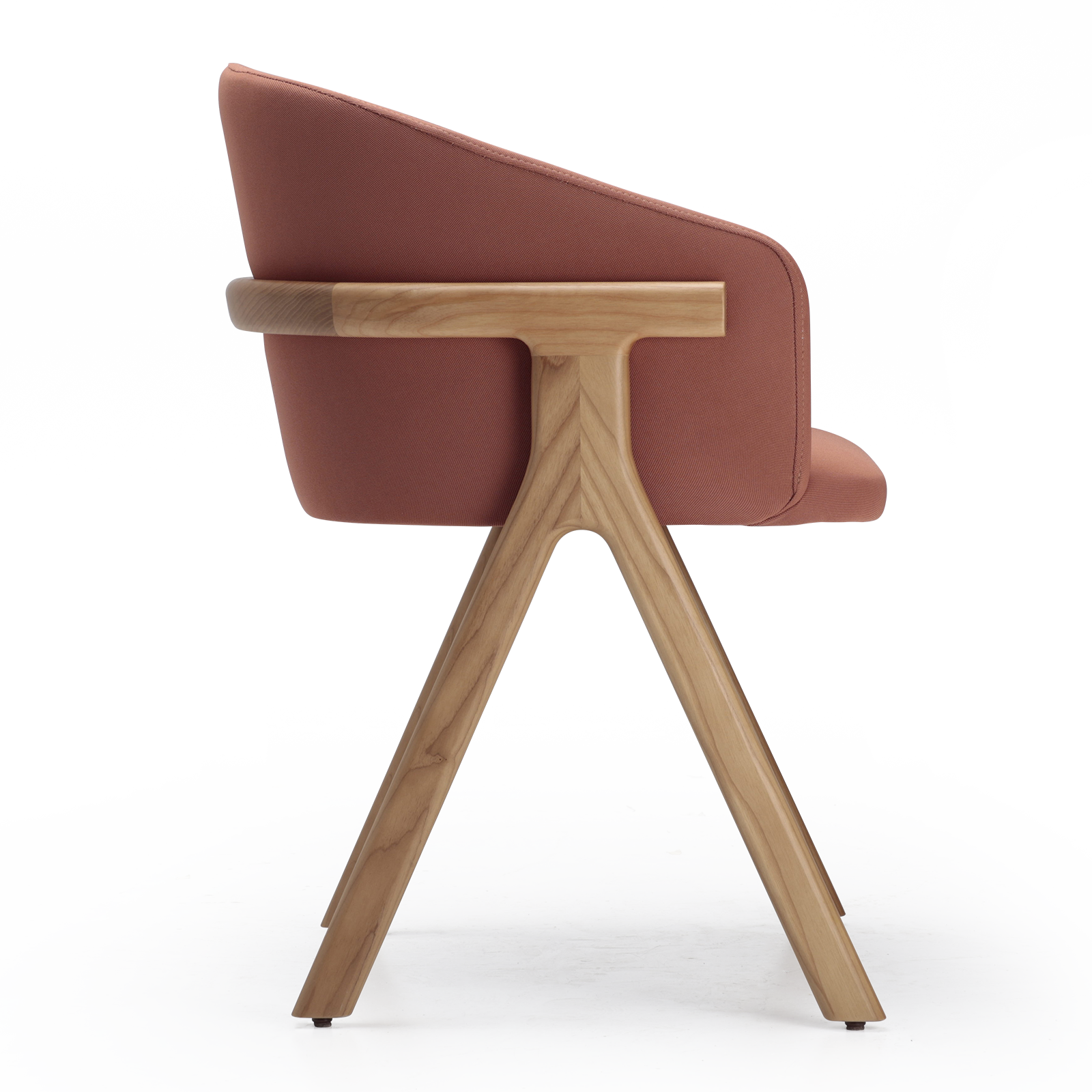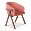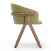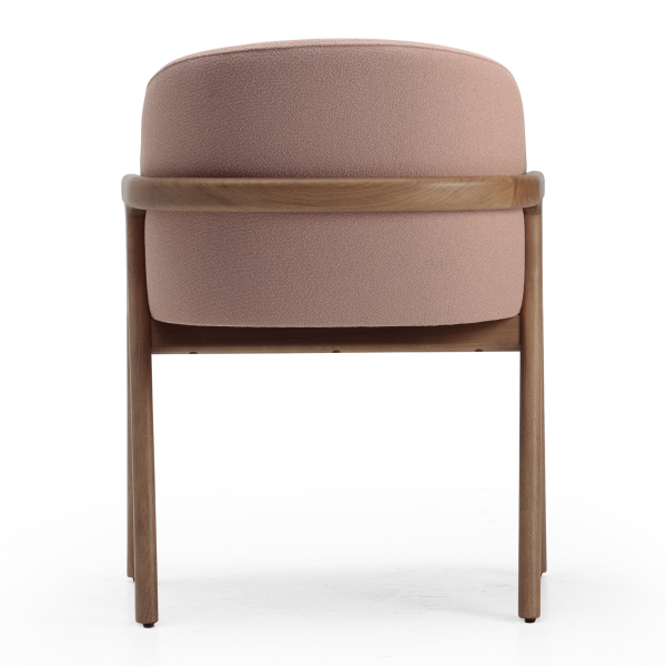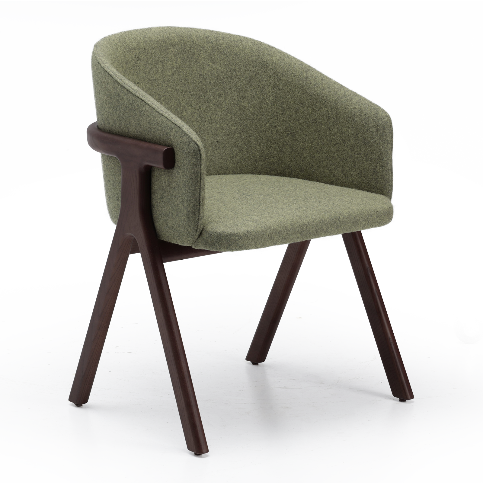 Der Stuhl Eora kombiniert Designstil mit Vintage-Einflüssen. Die breite, umhüllende Rückenlehne und die weichen, klaren Linien betonen die Kraft des Holzes.