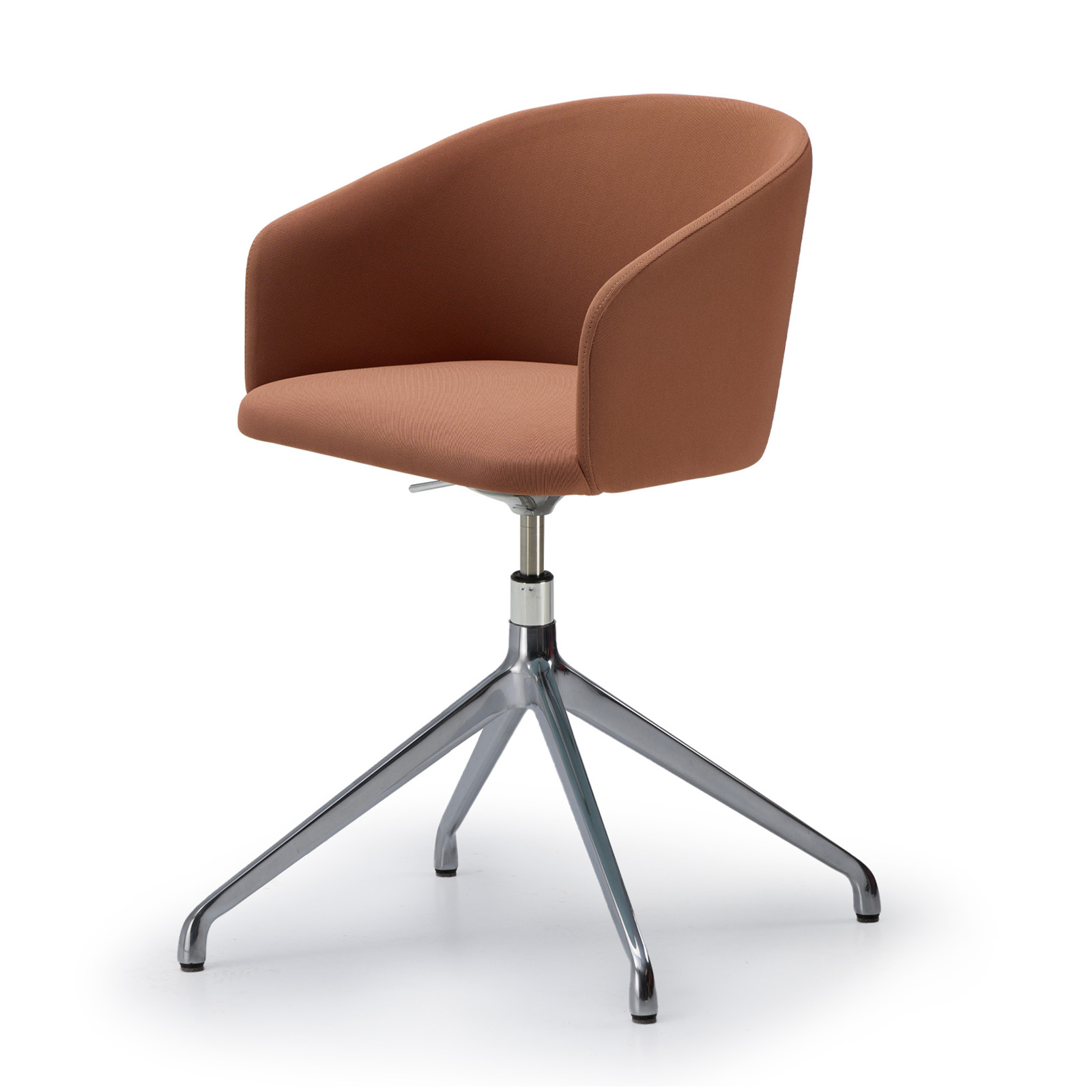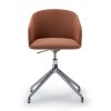Der Bürostuhl Oscar verbindet Design mit Vintage-Einflüssen. Die umhüllende Rückenlehne, die weichen und klaren Linien des Stuhls Eora, der als Bürostuhl mit und ohne Rollen erhältlich ist.
