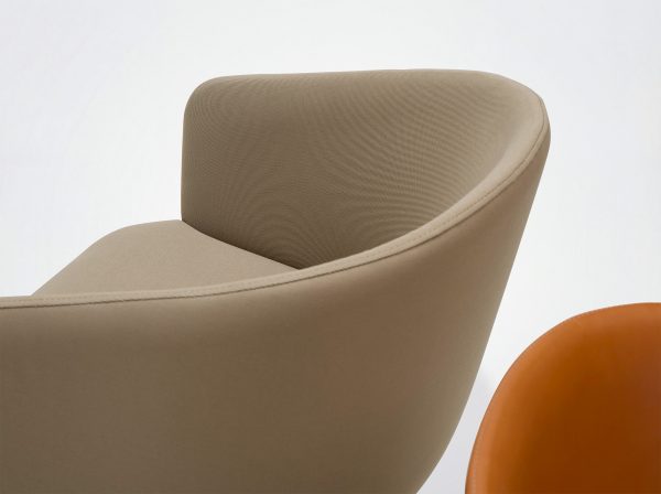 Der Bürostuhl Oscar verbindet Design mit Vintage-Einflüssen. Die umhüllende Rückenlehne, die weichen und klaren Linien des Stuhls Eora, der als Bürostuhl mit und ohne Rollen erhältlich ist.
