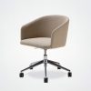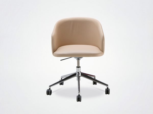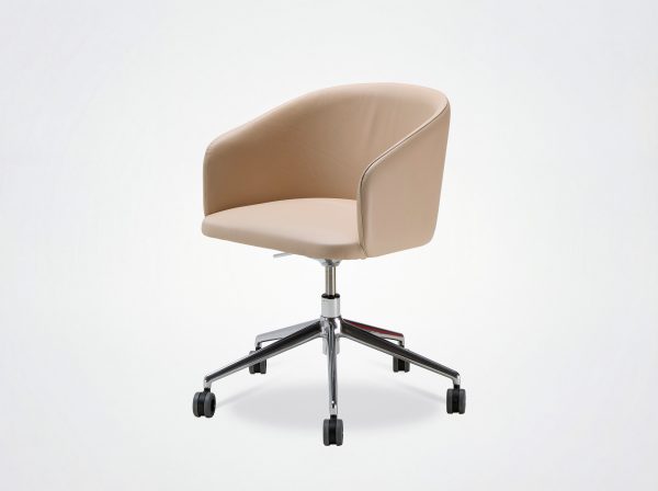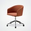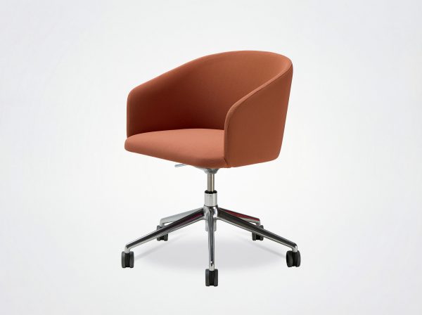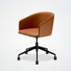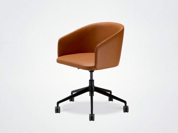 Der Bürostuhl Oscar verbindet Design mit Vintage-Einflüssen. Die umhüllende Rückenlehne, die weichen und klaren Linien des Stuhls Eora, der als Bürostuhl mit und ohne Rollen erhältlich ist.