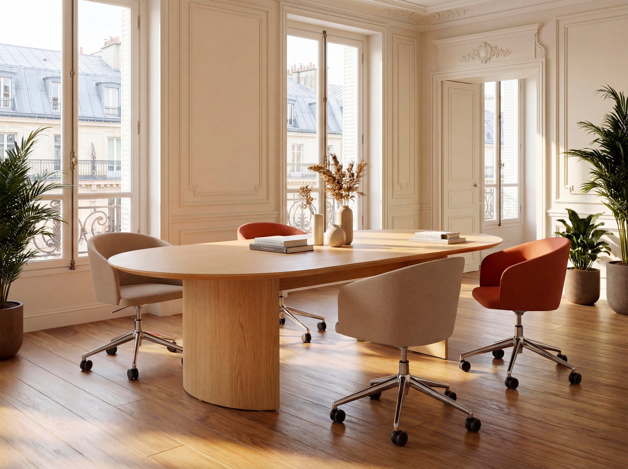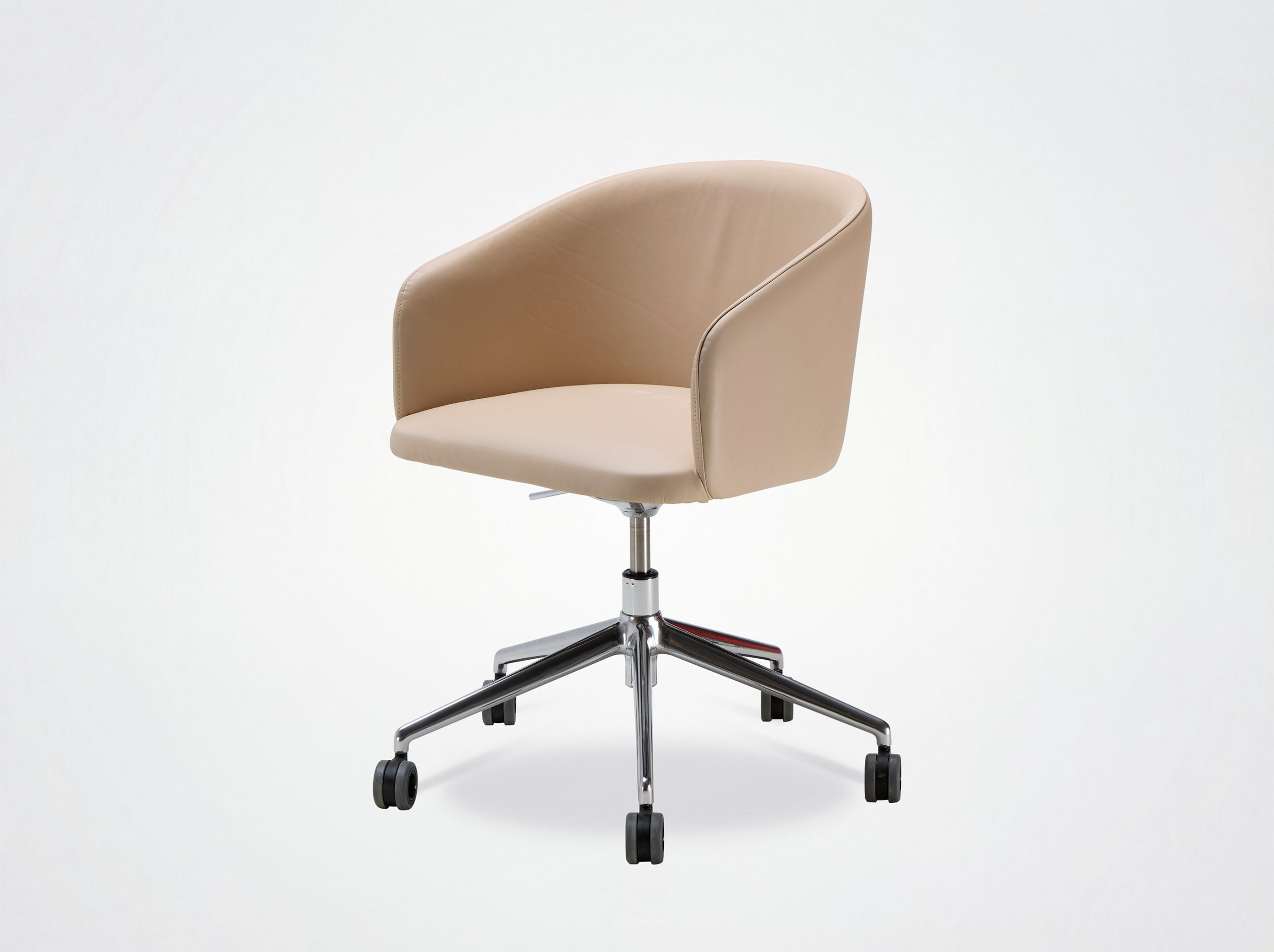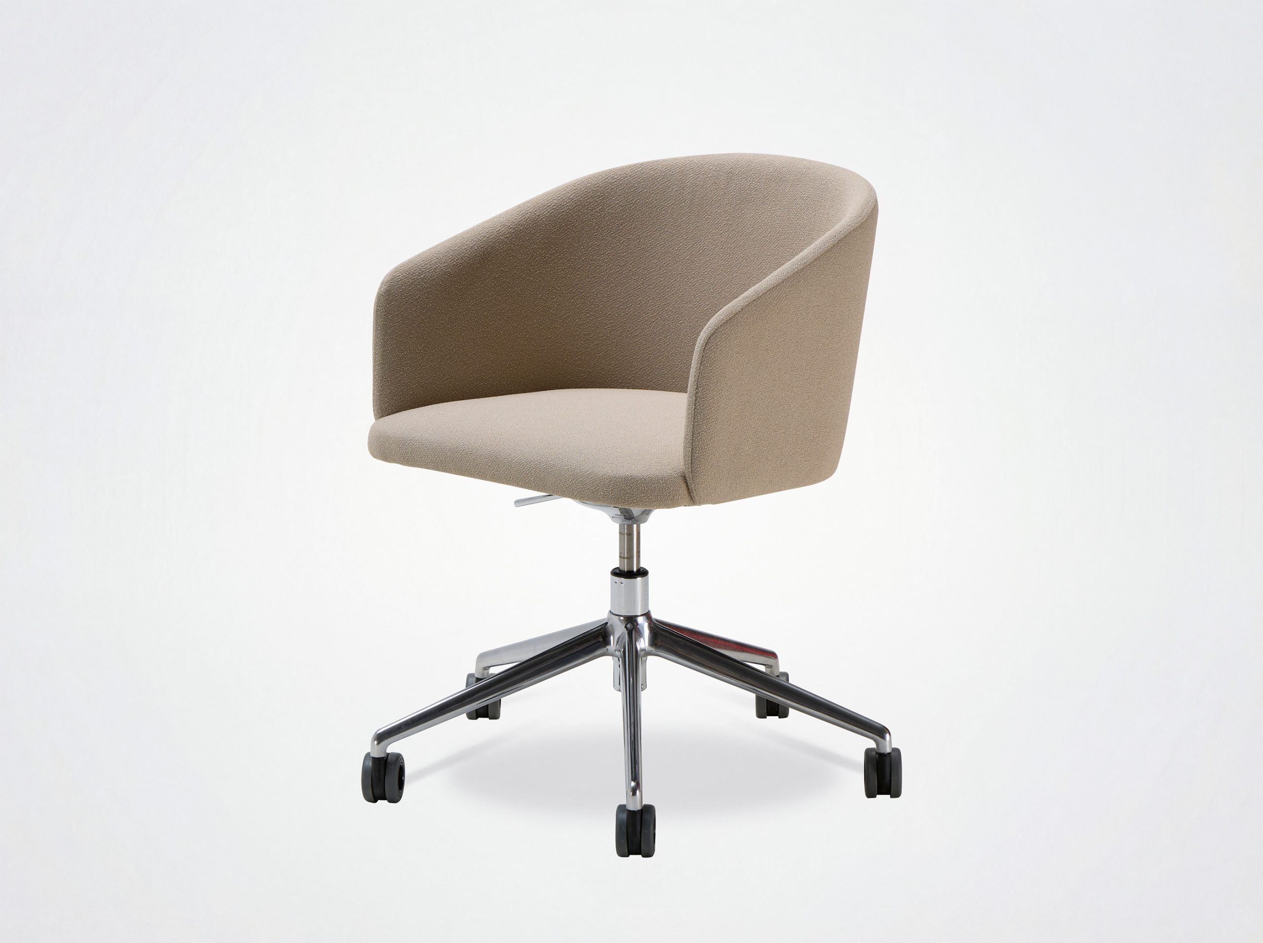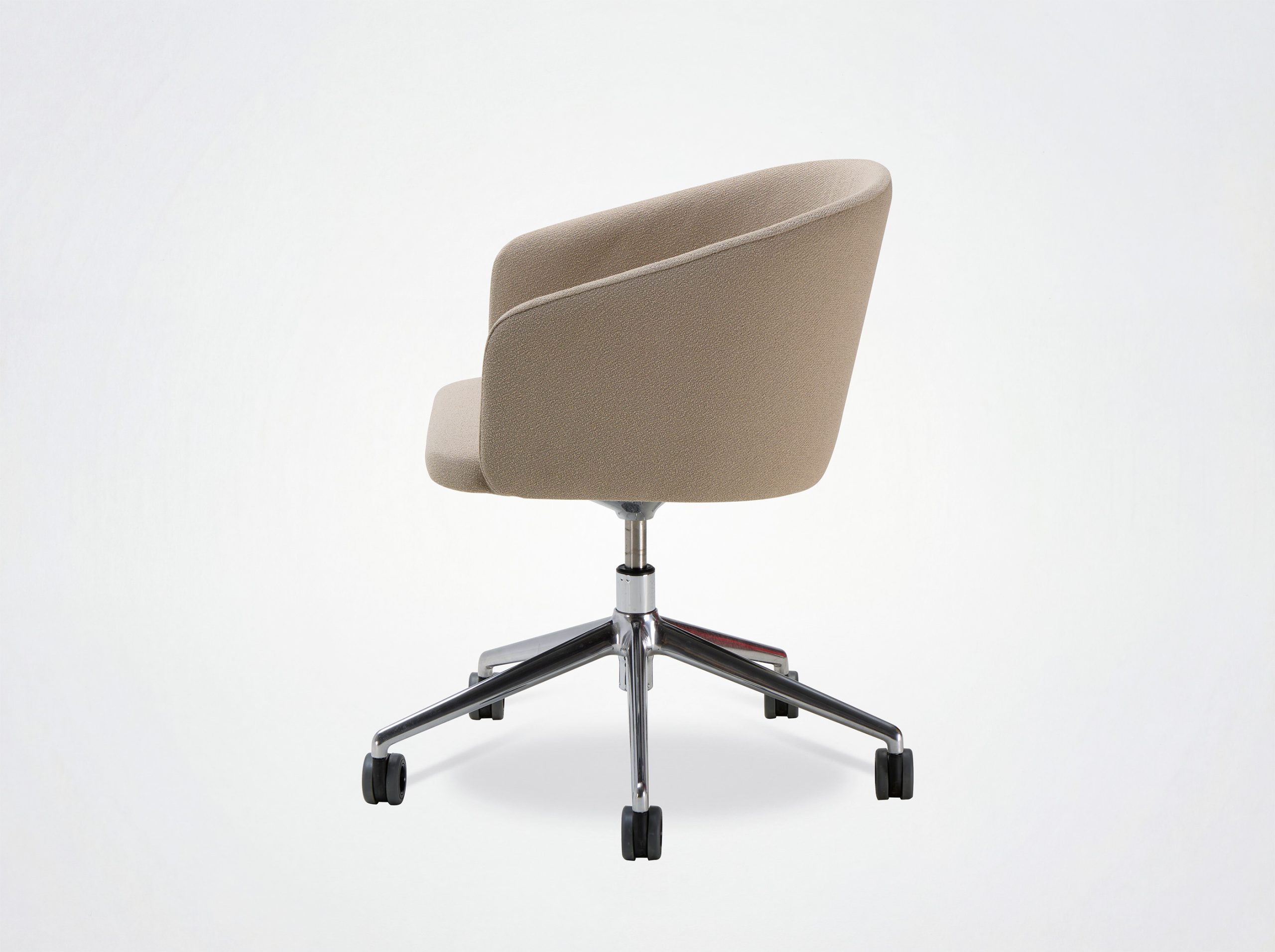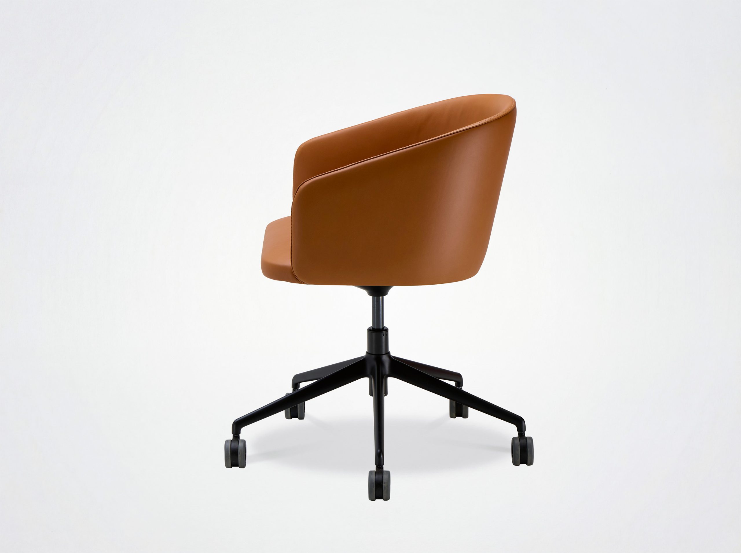 Der Bürostuhl Oscar verbindet Design mit Vintage-Einflüssen. Die umhüllende Rückenlehne, die weichen und klaren Linien des Stuhls Eora, der als Bürostuhl mit und ohne Rollen erhältlich ist.