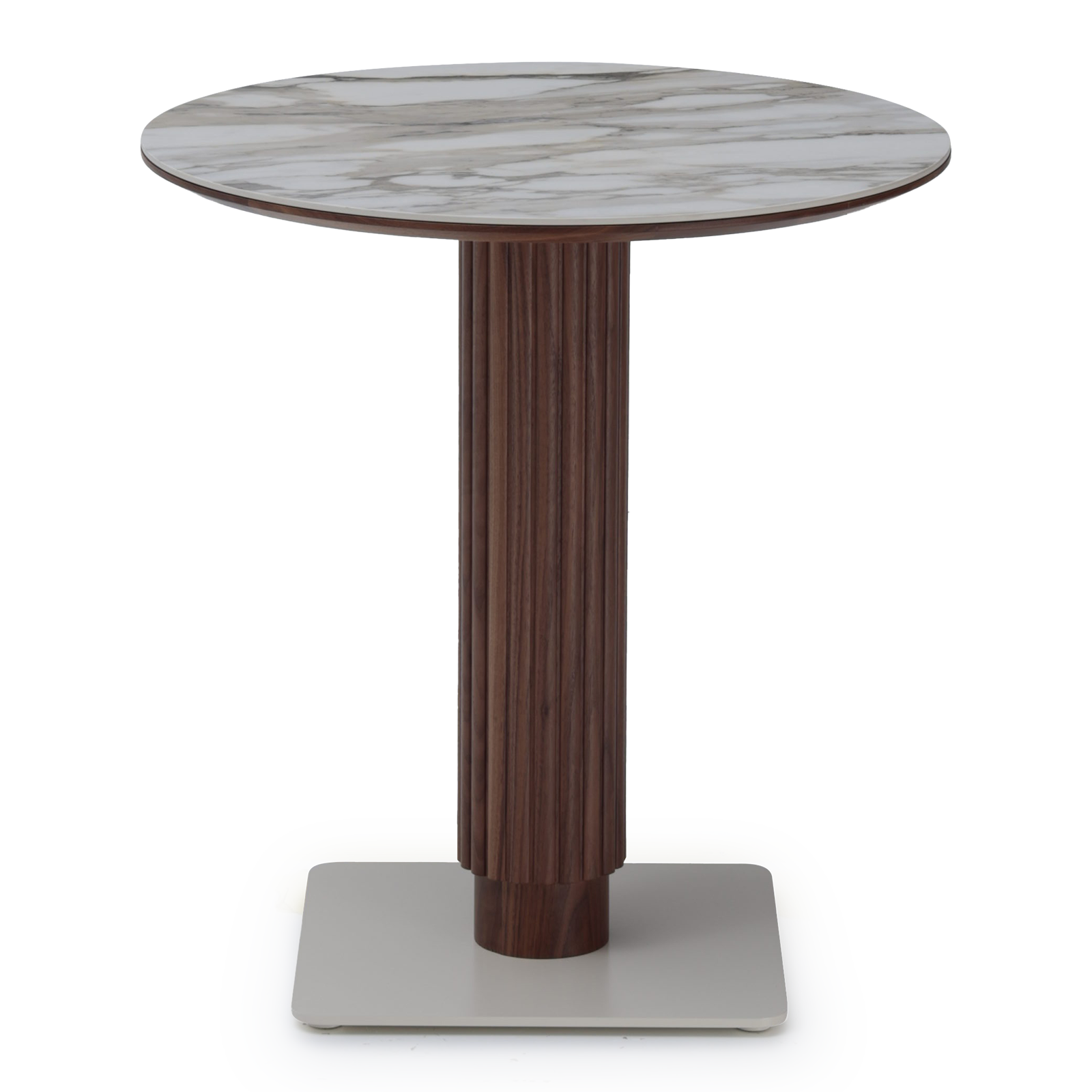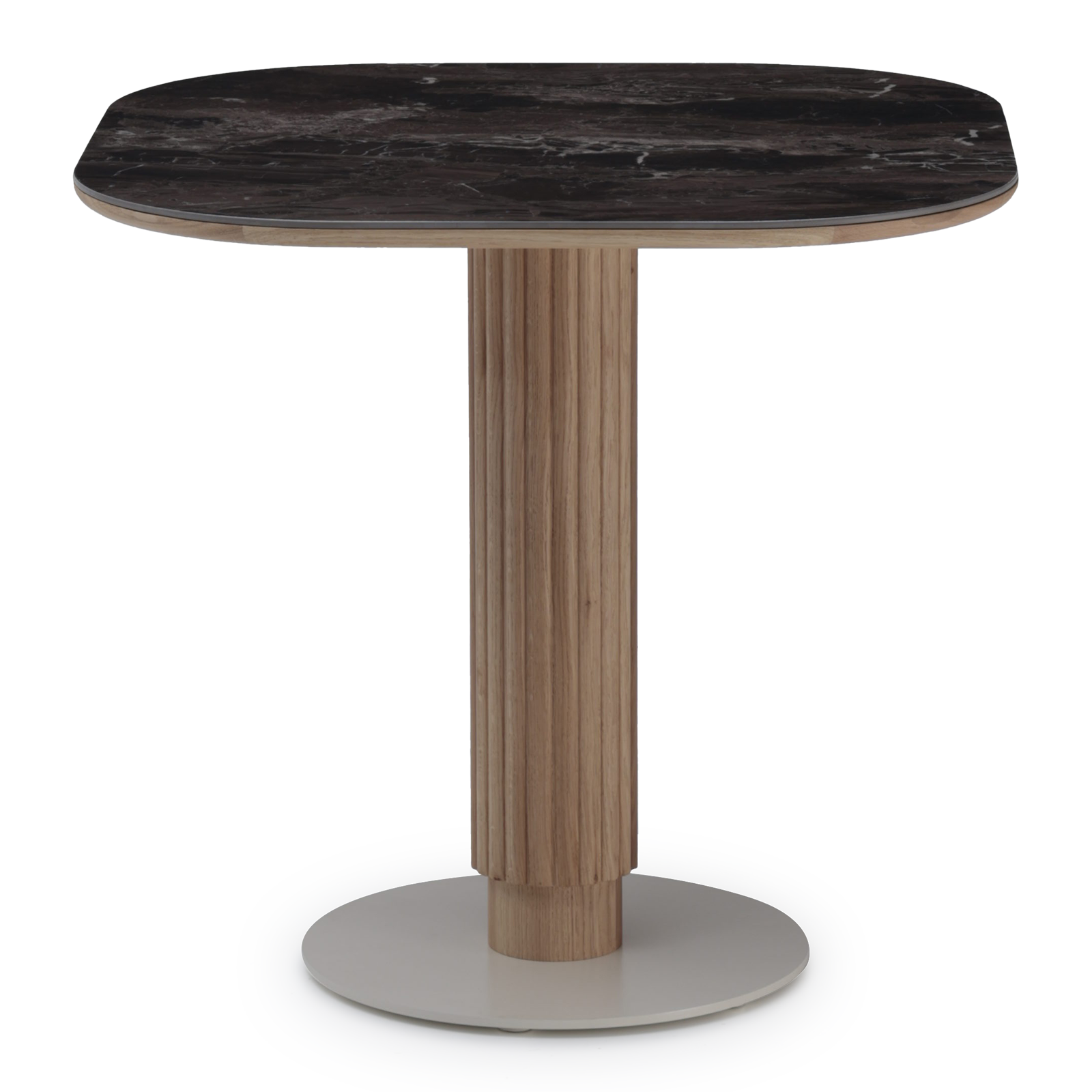 Entdecken Sie den Tisch Godron, eine raffinierte Neuinterpretation des Bistrotisches mit einem zentralen Metallfuß. Der Name Godron wurde von den sich wiederholenden Schlitzen rund um den Fuß inspiriert, die ein Spiel von Licht und Schatten erzeugen, das dem Tisch eine dynamische Eleganz verleiht. Die Individualität steht bei Godron im Mittelpunkt, mit Tischplattenoptionen, die es Ihnen ermöglichen, Form, Material, Zierleisten und Farbtöne zu wählen, um dem Zweck und dem Raum Ihrer Wahl gerecht zu werden.