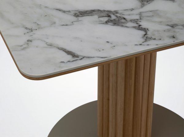 Keramikoberfläche: 6 mm Keramikplatte auf 19 mm Mdf mit Massivholzeinlagen verleimt.