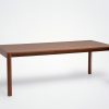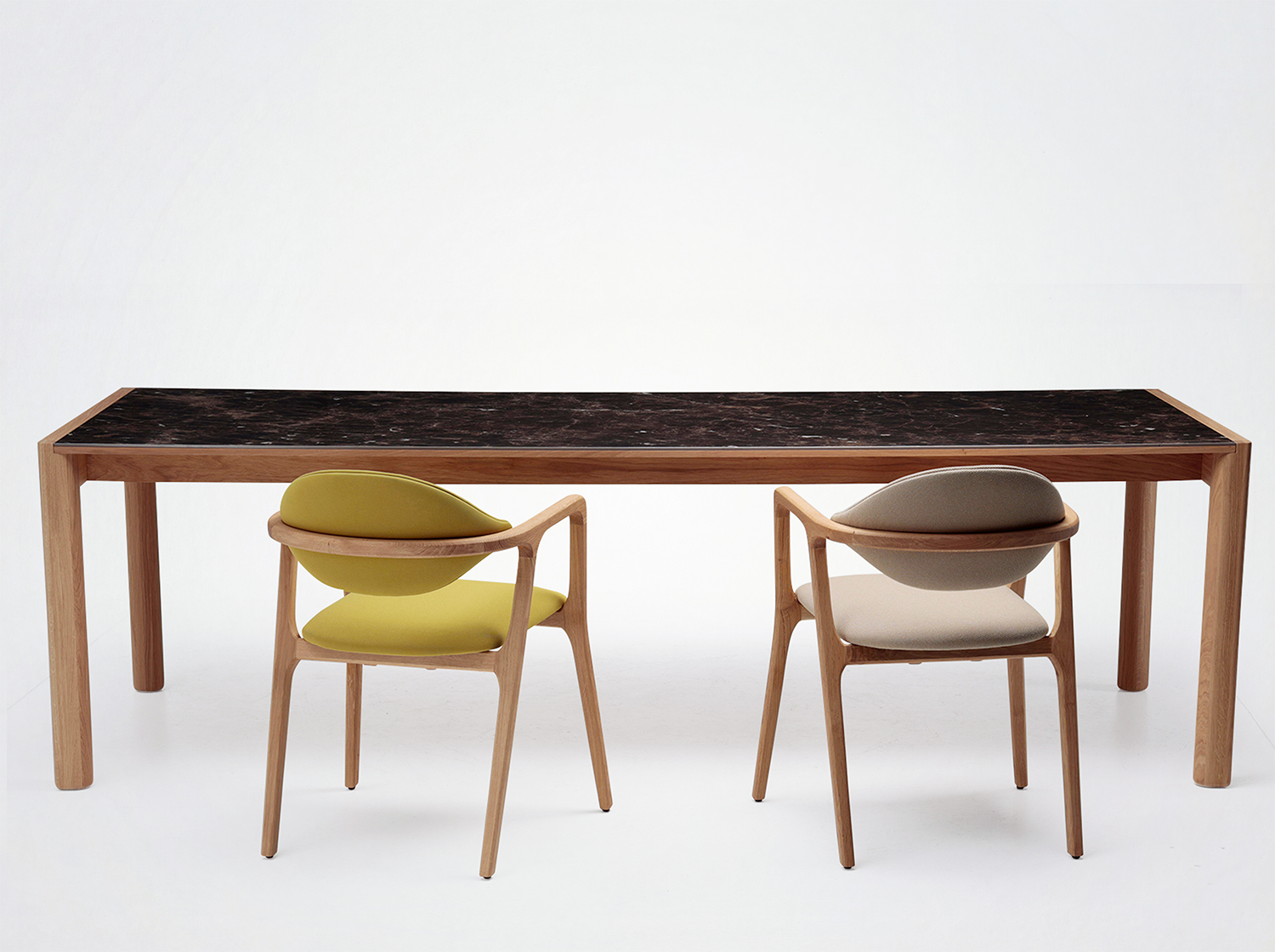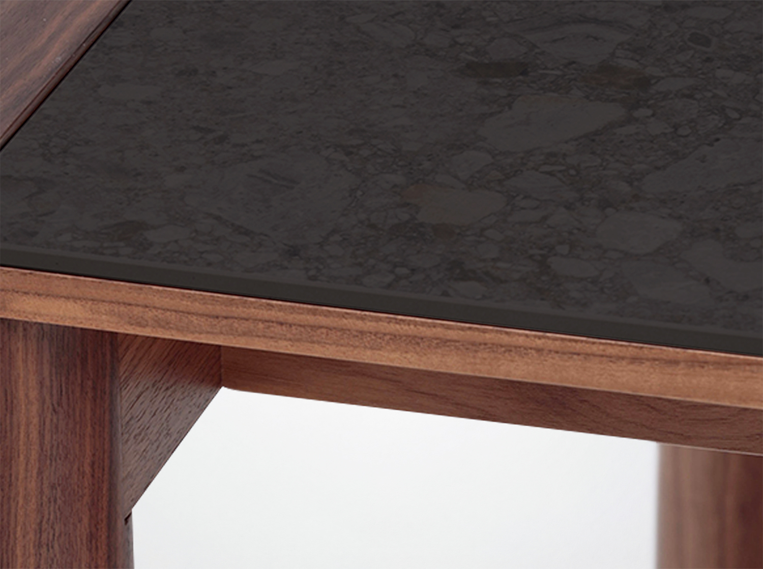 Bei der Kollektion Rive konzentrierten sich die Ideen des Studios natürlich auf die Betonung der Holzverarbeitung, insbesondere bei der Struktur und dem Gestell des Tisches. Eine der größten technischen Herausforderungen waren die subtilen und komplexen Verbindungen zwischen den Beinen und der Querstrebe, die an jedem Ende des Tisches harmonisch ineinander übergehen. Dies ist ein Schlüsselelement im Design der Kollektion, das eine ästhetische Kohärenz schafft und gleichzeitig die notwendige Stabilität der Struktur gewährleistet.
