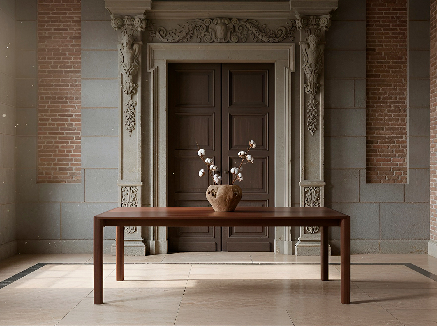 Eine weitere Herausforderung war die Aufrechterhaltung der Kontinuität der Ebenen zwischen den Querstreben und der Tischplatte. Die Präzision dieser Verbindungen war entscheidend, um das Gleichgewicht zwischen visueller Eleganz und funktionaler Robustheit zu bewahren.