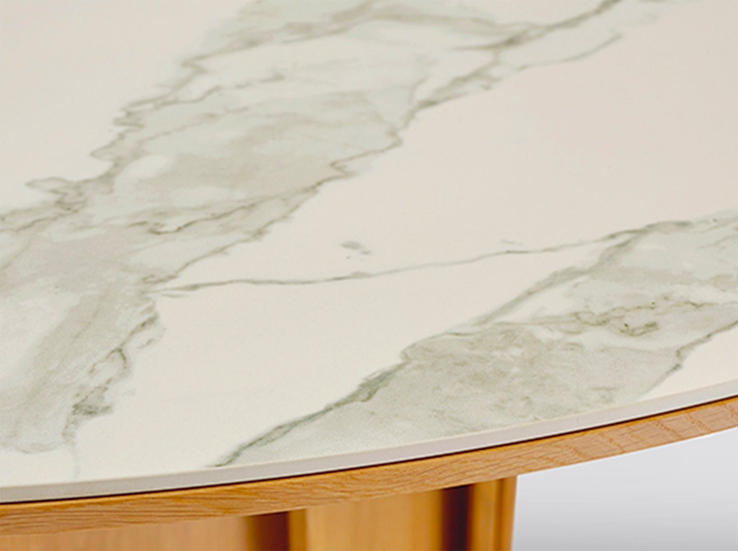 Keramikoberfläche: 6 mm Keramikplatte auf 19 mm MDF mit Massivholzeinlagen verklebt.