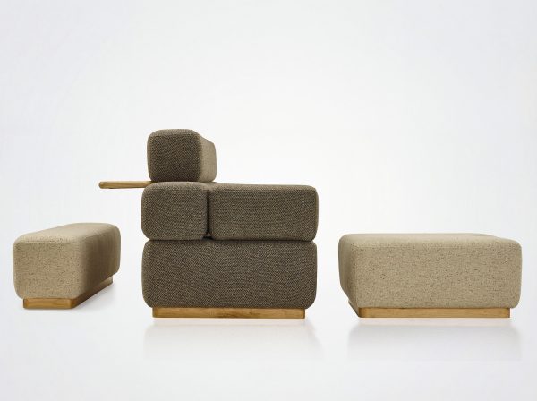 Die Workspace-Kollektion ist Briand et Berthereaus Interpretation eines schlichten und modularen Sofatyps für Coworking-Bereiche. Zusammenarbeiten, konzentrieren, entspannen, warten, präsentieren, essen, sich austauschen, sich zurückziehen oder sich unterhalten: all diese Bedürfnisse müssen in den heutigen Büroräumen erfüllt werden. Wie ein Tetris-Spiel bieten die verschiedenen Module der Workspace-Serie Lösungen für die Anforderungen von Arbeitsräumen. Das modulare Design basiert auf der Verbindung von kubischen und rechteckigen Volumen, wodurch Möbel für eine Vielzahl von Zwecken geschaffen werden können.